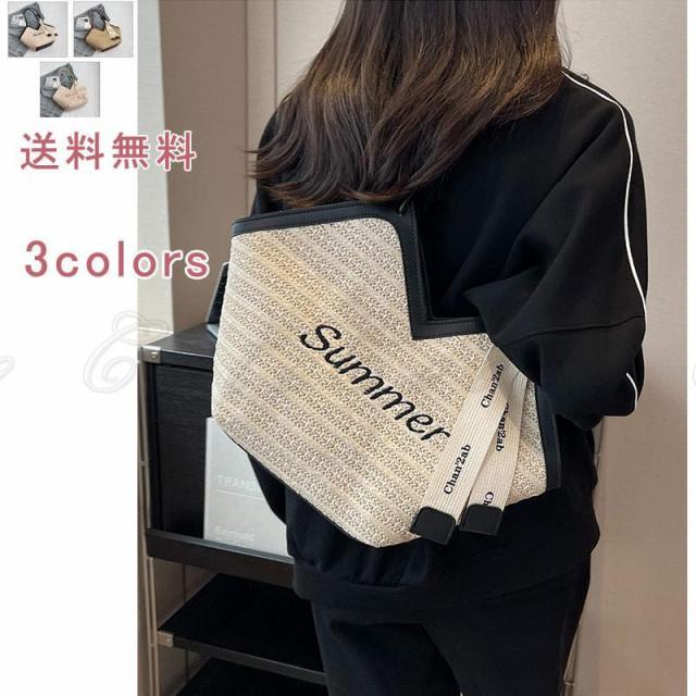 草編みバッグ サマーバッグ かばん レディース かごバッグ ショルダーバッグ トートバッグ レディース 手提げ 肩掛け 英文字 大容量 旅行 通学 通勤 リゾート