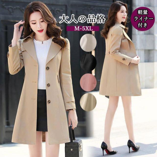 トレンチコート レディース 春 秋 ベーシック 撥水 ミドル丈 大きいサイズ リクルート 通勤 アウター コート ビジネス カジュアル フォーマル きれいめ
