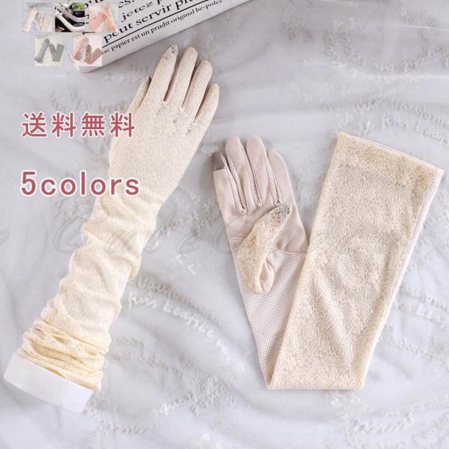 レースグローブ UVカット手袋 レディース ロング丈 タッチパネル対応 手袋 アームカバー フラワー 日焼け対策 薄手 エレガント 夏 アームスリーブ 運転