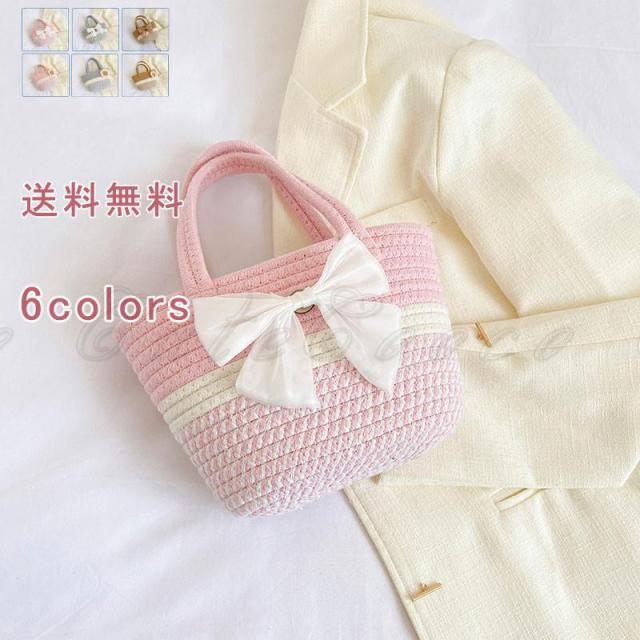 ミニバッグ かごバッグ かばん レディース ストローバッグ サマーバッグ ショルダー トートバッグ レディース 花柄 蝶結び 手提げ 大容量 旅行 海 北欧 夏
