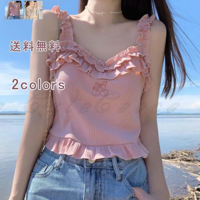 キャミソール タンクトップ インナー フリル 刺繍 y2k ギャル へそ出し ノースリーブ 重ね着 ショート丈 すっきり レディース カジュアル ナチュラル 春 夏