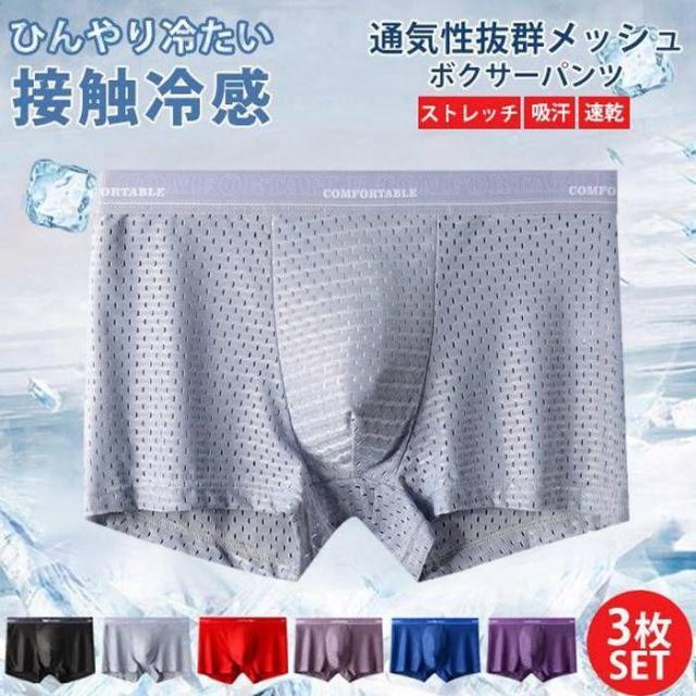 ボクサーパンツ メンズ 接触冷感 メッシュ 3枚セット 薄め 通気性 前閉じ 下着 アンダーウェア 涼しい 快適 吸汗 速乾 無地 夏 蒸れない