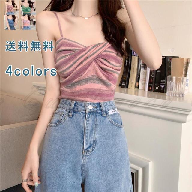 キャミソール タンクトップ インナー カラフル ノースリーブ 重ね着 ショート丈 すっきり ギャル レディース カジュアル ナチュラル 春 夏