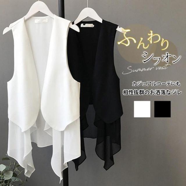 ベスト レディース シフォンベスト 前開き ジレ 不規則裾 ノースリーブ 羽織り 体型カバー 重ね着 レイヤード 日常 在宅 通勤 通学 外出 無地 カジュアル 大きいサイズ 20代 30代 40代 50代