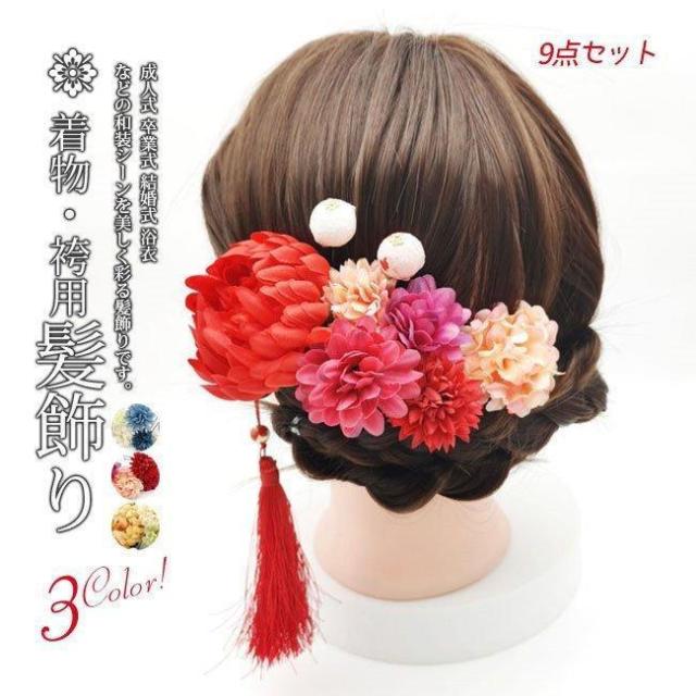 夏祭りクーポン配布中!父の日 成人式 髪飾り 9点セット 卒業式 ヘアーアクセサリー 袴 和装 浴衣 七五三 髪留め 和風 結婚式 二次会