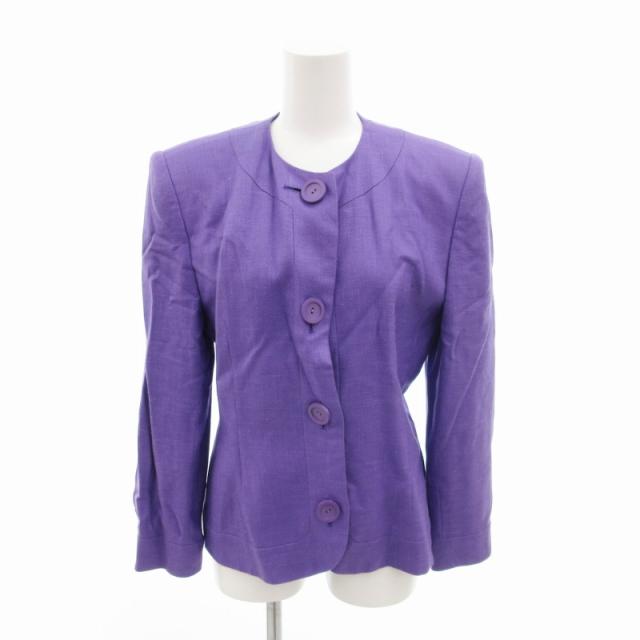 【中古】ジバンシィ GIVENCHY ヴィンテージ ノーカラージャケット ブルゾン ボタン 8 紫 パープル レディース