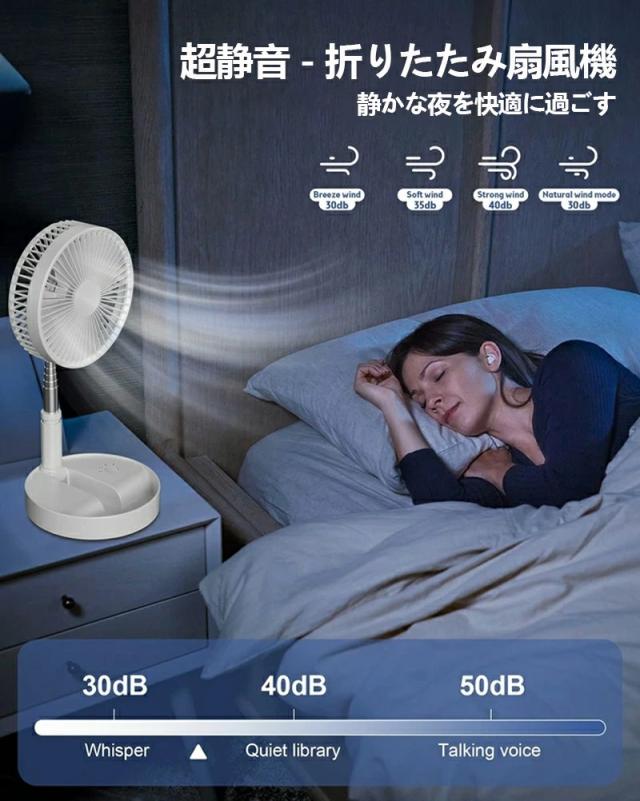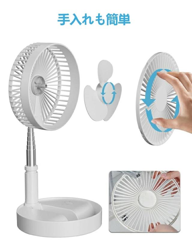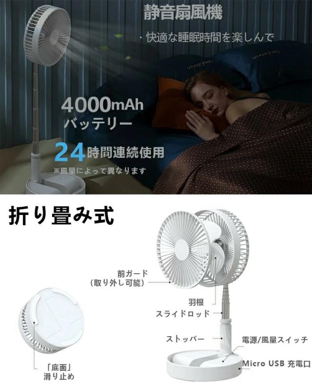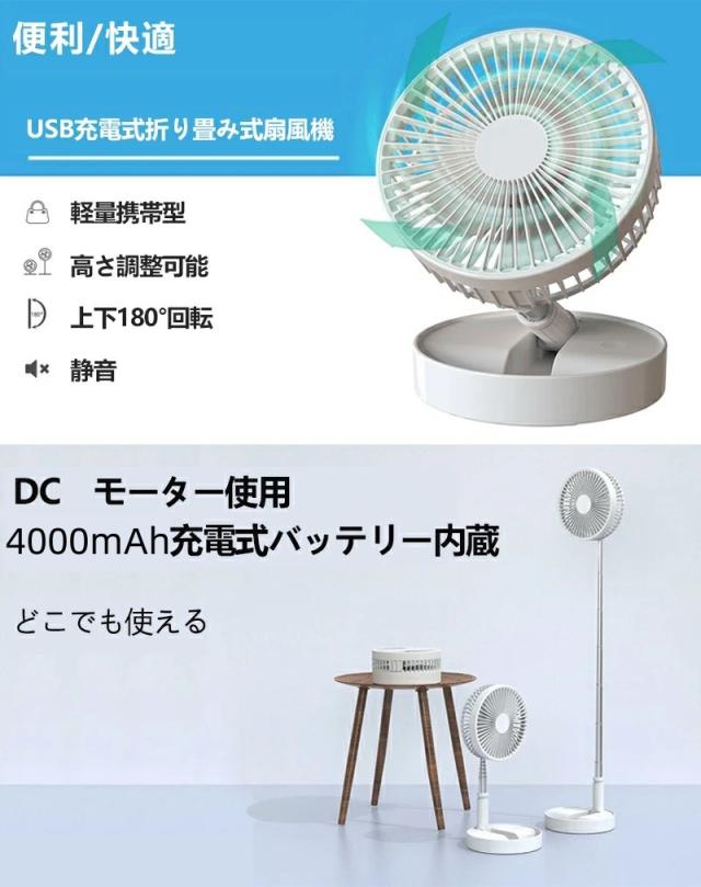 お買い得!USB充電式 折り畳み扇風機 伸縮式 卓上 コンパクト 4000mAh 充電式 バッテリー内蔵 5-23時間連続稼働 伸縮チューブ 寝室 家庭用ポータブル 静音 フロアファン 風量3段階調節 ベッドファン 旅行/キャンプ用 ポータブルデザイン