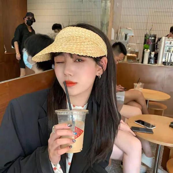 女性のためのカジュアルな麦わら帽子 空のトップ 折りたたみ式 ポータブル マジックテープ ビーチアクセサリー サンバイザー ゴロス