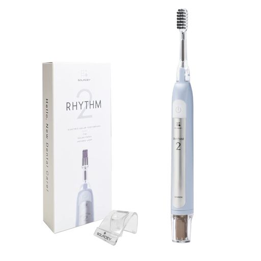 ソラデーリズム SOLADEY RHYTHM 2 (アイスブルー) 電動歯ブラシ スペアブラシ(ハニカムP)+ケース付 音波振動 TIO2半導体/ソーラーパネル内蔵 (シケン)