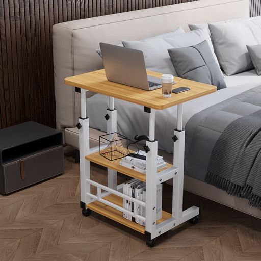 【高さ調節可能なサイドテーブル】製品のサイズ:幅約60 cmx幅40 cm、製品は高さ60~85センチを調節できます。テー ブルはベッドとソファーの高さによって快適な高さに調節できます.丈夫で耐久性があり、総負荷量:約20 kgで、強力な 荷重能力をサポートしながら、デスクの優れた安定性を確保します.