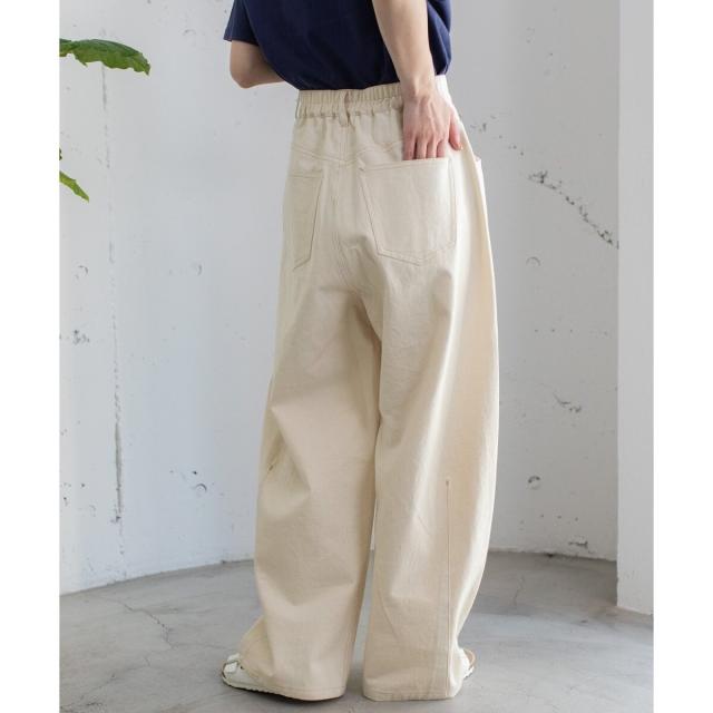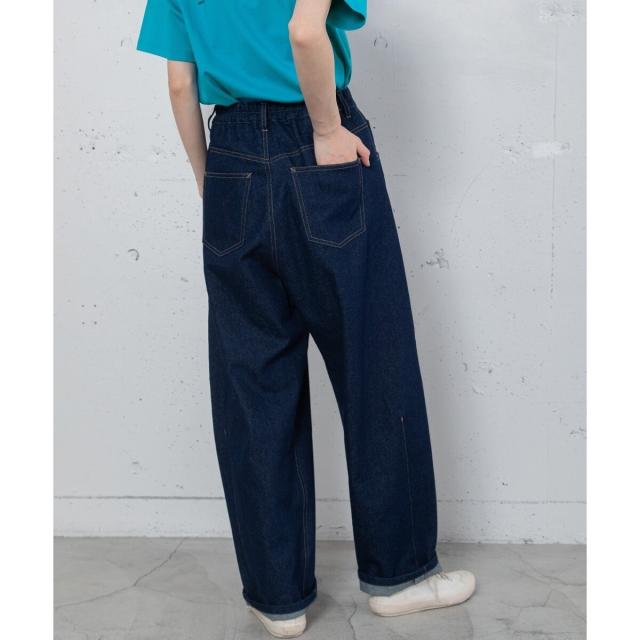 裾に向けてカーブしたバレルシルエットのジーンズ。ゆとりを持たせたルーズなサイズ感です。程よく厚みのあるデニム地で仕立てているのでラフに着られ、ロングシーズン着回せます。脚を長く見せてくれるスタイルアップ効果も◎旬のスタイリングが叶うトレンドアイテム。バックウエストゴム仕様。両サイド・バックポケットつき。