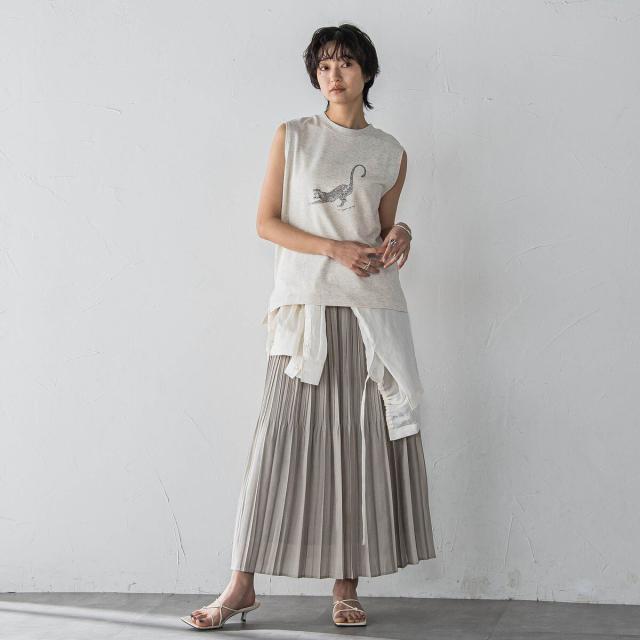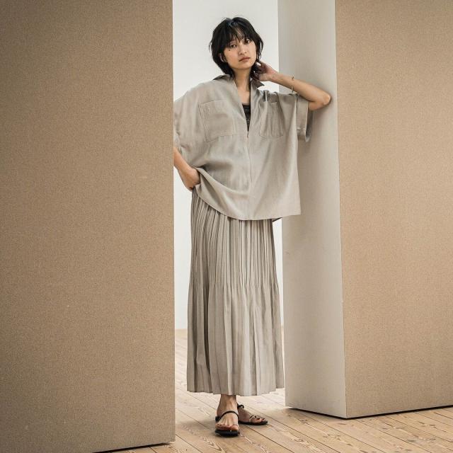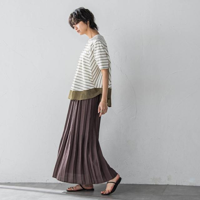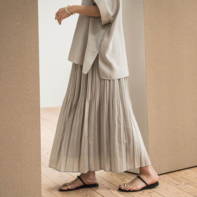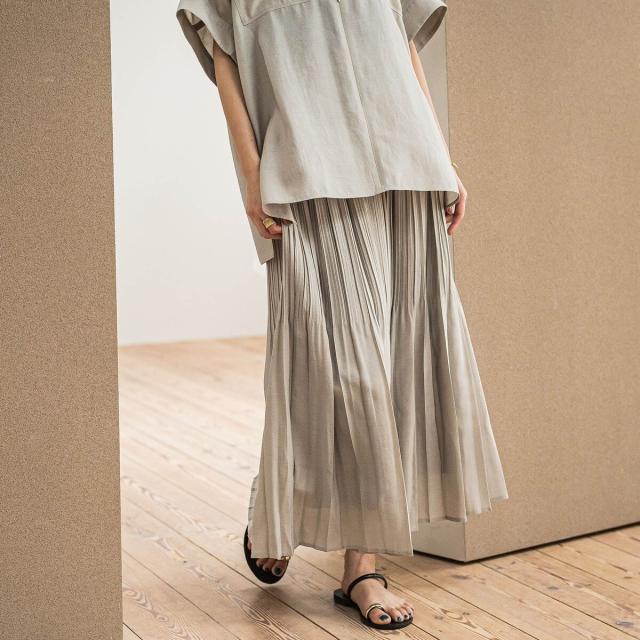 上下で幅を変えて、キリッとした印象に仕上げたプリーツスカート。
