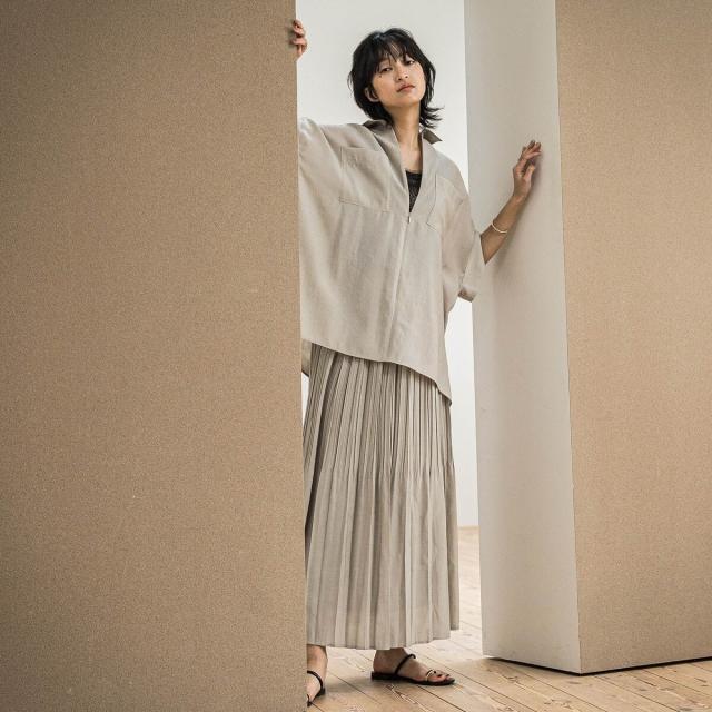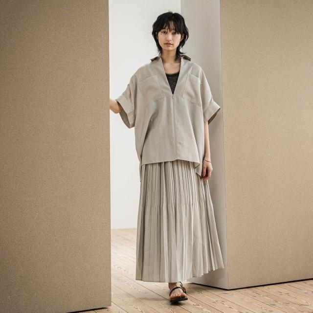 分量がありながらも、特殊なプリーツ加工で広がりをおさえたシルエット。