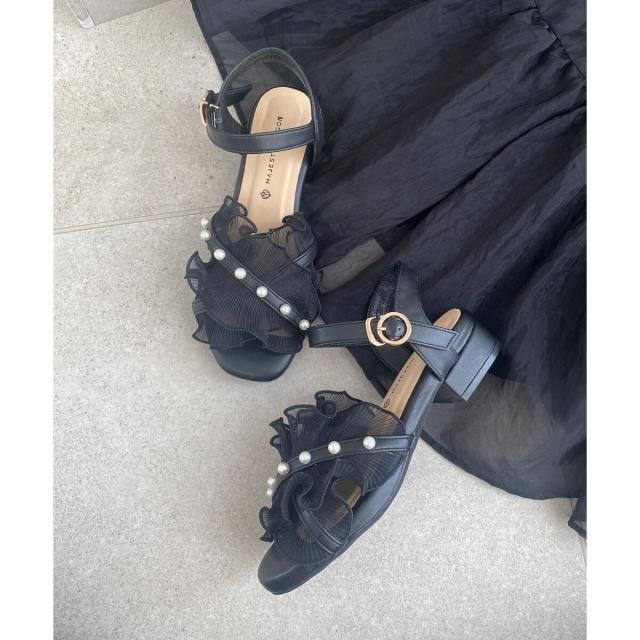 パールシアーフリルサンダル