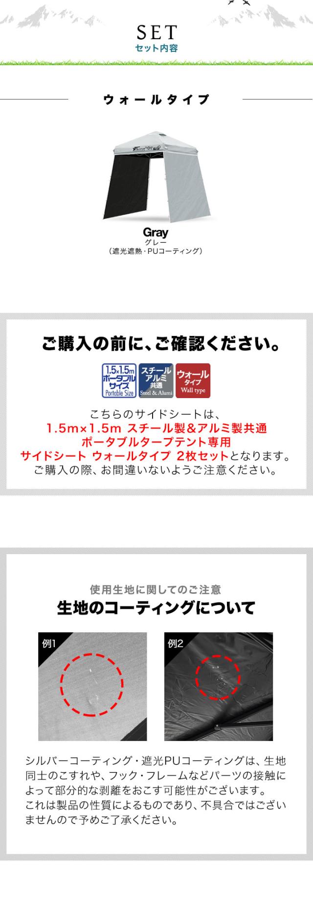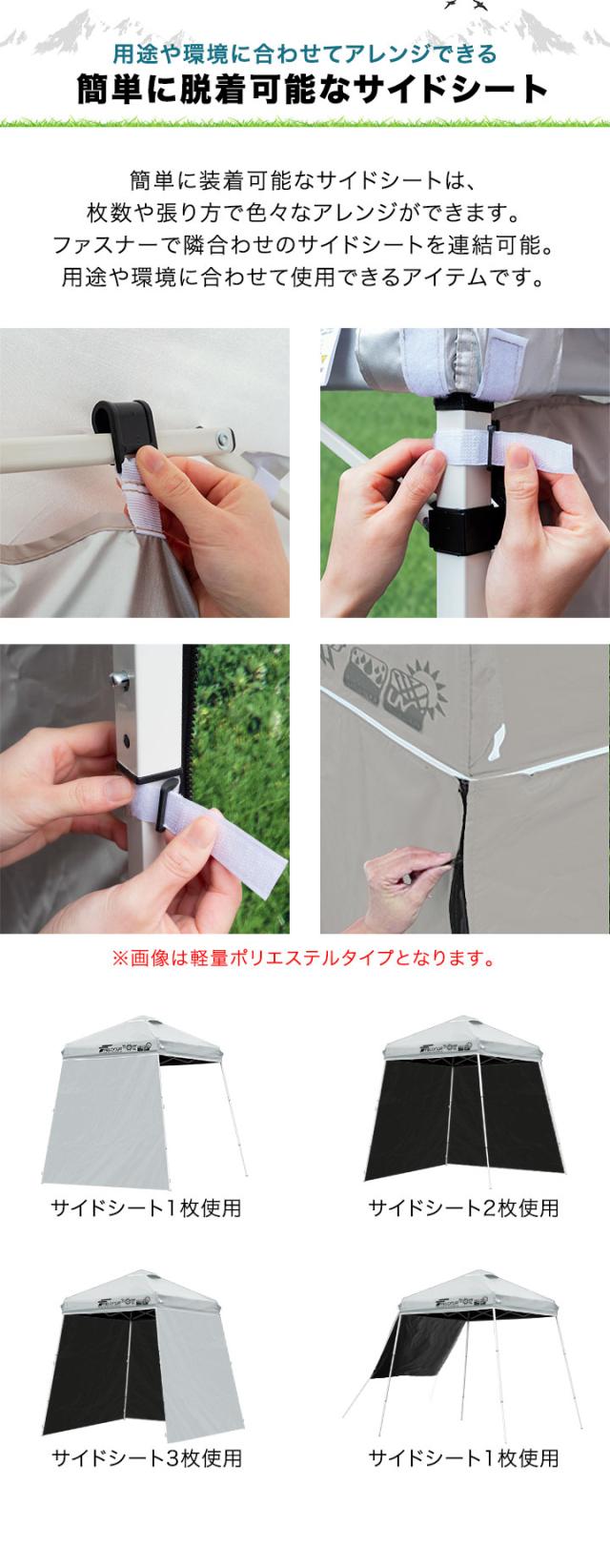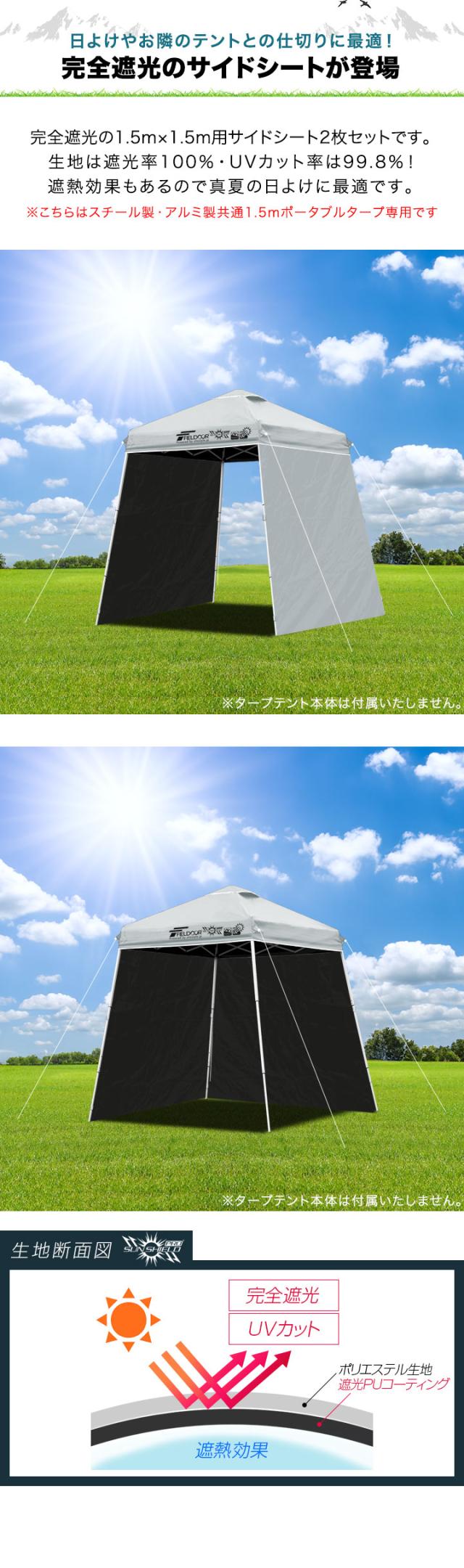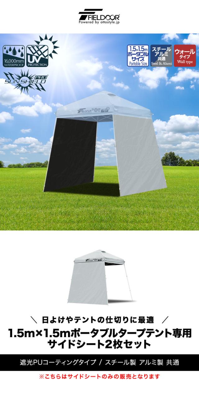FIELDOOR 1.5m ポータブルタープテント専用 横幕 サイドシート 2枚セット 1.5m 150cm 遮光/遮熱コーティング ウォールスクリーン 追加オプション ワンタッチタープテント専用 日よけ 目隠し シェード ※タープテント本体別売 1年保証 送料無料