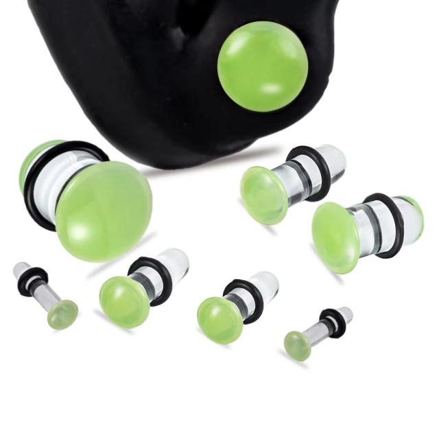 [14G 12G 8G 6G 4G 2G 0G 00G 弾丸型 ボディピアス ] 透明ガラスビュレッツプラグ(ライトグリーン) 1個販売 透明ピアス ボディーピアス クリア 金属アレルギー対応 メンズ レディース ゴムキャッチ 拡張 つけやすい 簡単 つけっぱなし プレゼント 男子 女子 耳ロブ 黄緑色