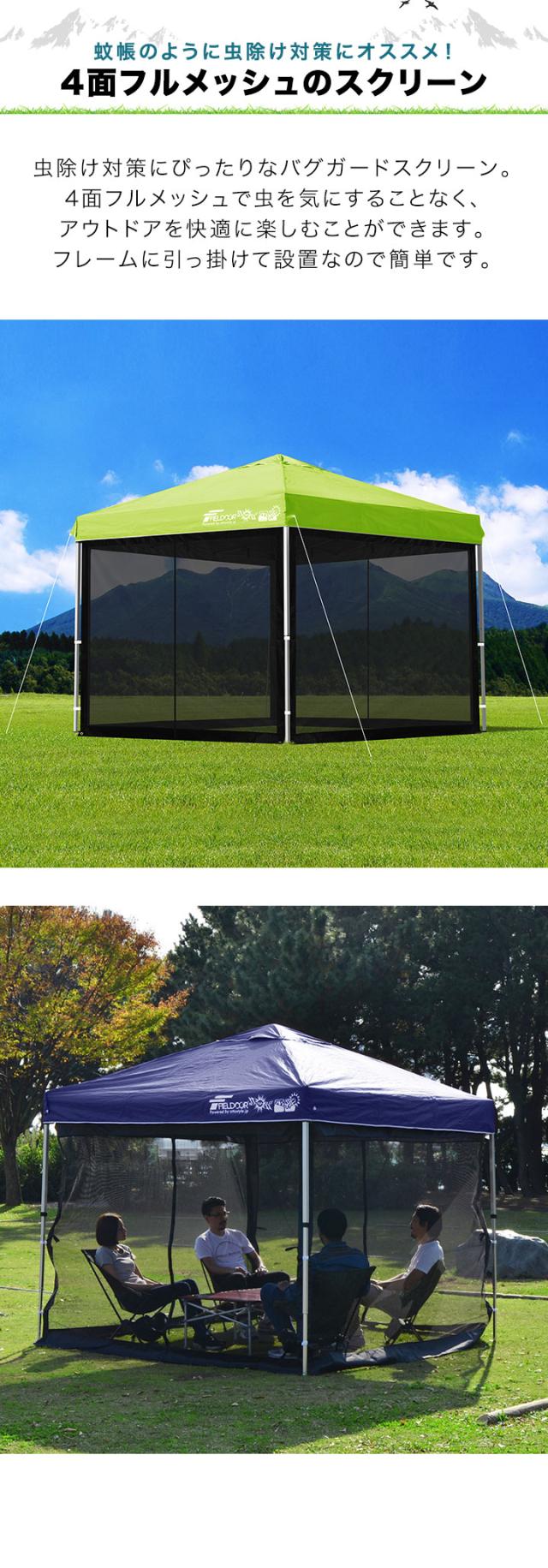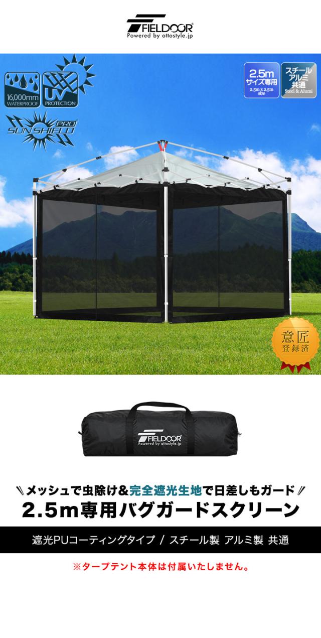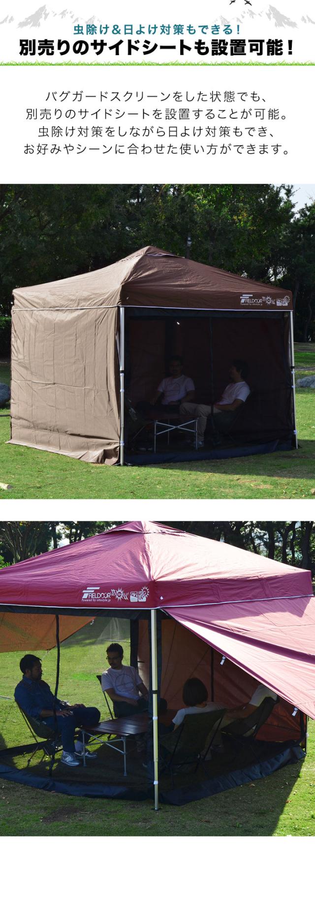 FIELDOOR ワンタッチタープテント用 横幕 サイドシート 2.5m 250cmサイズ バグガードスクリーン 天面遮光/遮熱コーティング 4面 吊り下げ 蚊帳 メッシュ 虫よけサイドシート 虫よけ 網 オプション ※タープテント本体別売 1年保証 送料無料