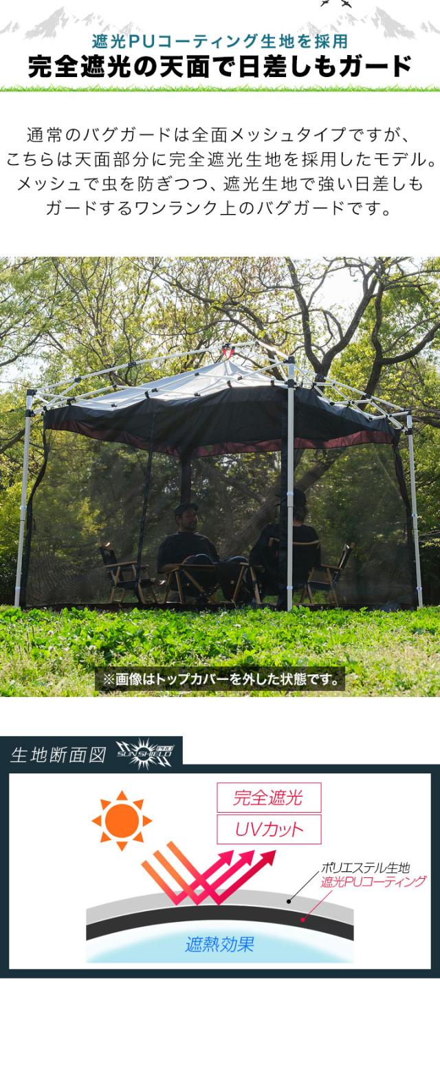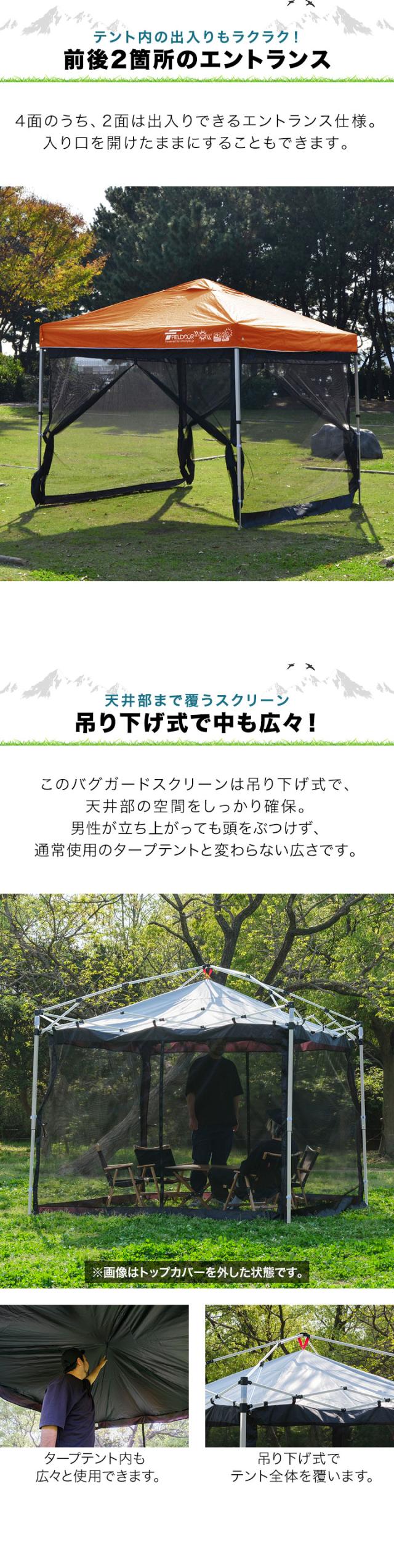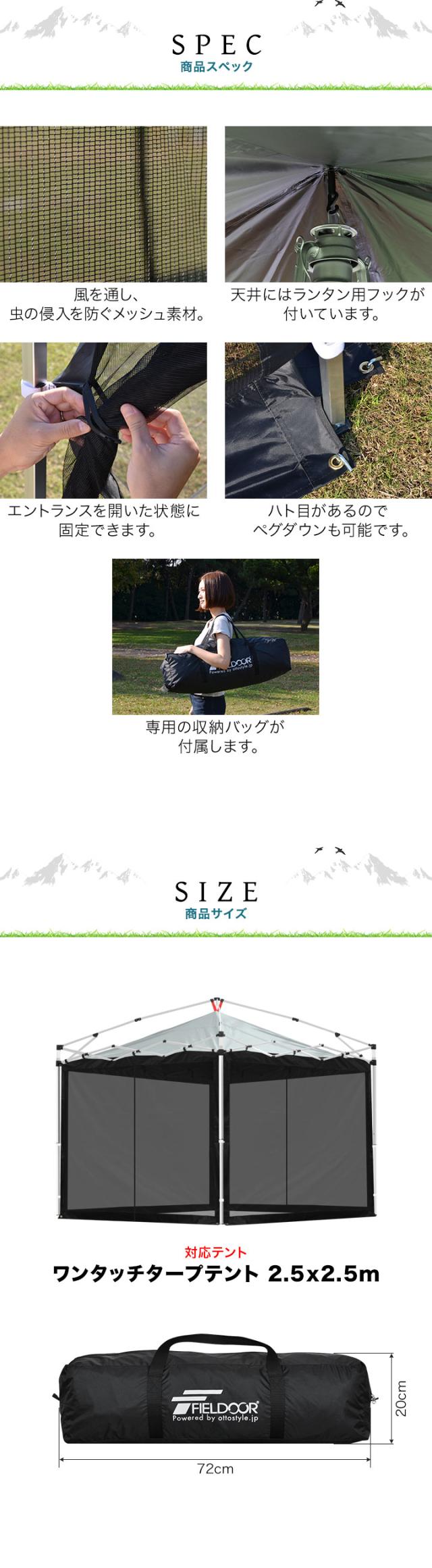 FIELDOOR ワンタッチタープテント用 横幕 サイドシート 2.5m 250cmサイズ バグガードスクリーン 天面遮光/遮熱コーティング 4面 吊り下げ 蚊帳 メッシュ 虫よけサイドシート 虫よけ 網 オプション ※タープテント本体別売 1年保証 送料無料