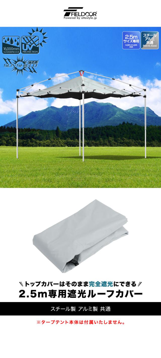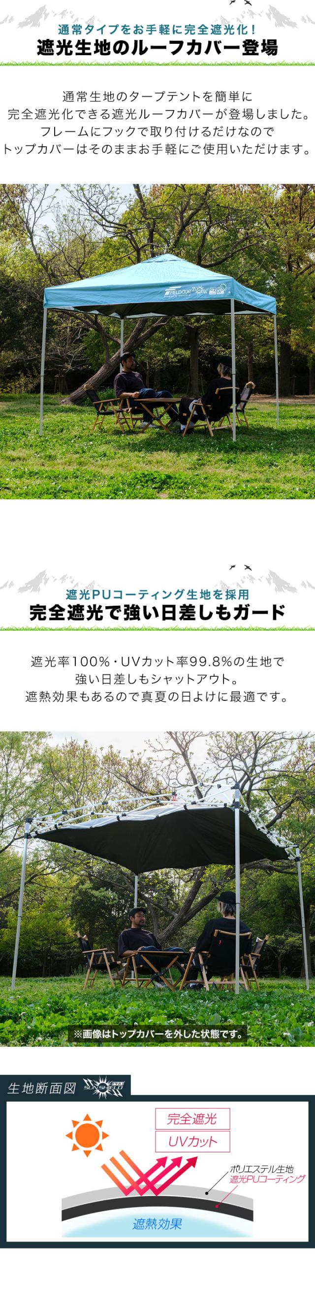 FIELDOOR ワンタッチタープテント用 遮光ルーフカバー 2.5m 250cm サイズ 天面遮光/遮熱コーティング 吊り下げ式 後付け 遮光 追加オプション ワンタッチタープテント専用 日よけ 天井 屋根 シェード ※タープテント本体別売 1年保証 送料無料