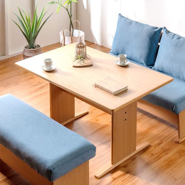 テーブルのサイズは約幅120cm×奥行75cmと広いスペースがとれない場合でも取り入れやすい大きさです。コンパクトでも大人4人しっかりと座っていただけます。