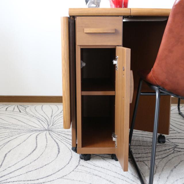 ダイニングテーブル 2人用 折りたたみ 幅32〜125cm バタフライ 引出し付 ( テーブル 食卓テーブル キャスター付き 収納 引き出し 木製 コンパクト 天板 伸長 折り畳み ダイニング 食卓 おしゃれ 省スペース 伸縮テーブル )