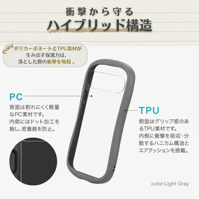 背面には、割れにくく軽量でありながら透明感を保つポリカーボネート(PC)素材を組み合わせたハイブリッド構造で、Google Pixel 9 / 9 Proを不意の落下や日常的な衝撃から守ります。