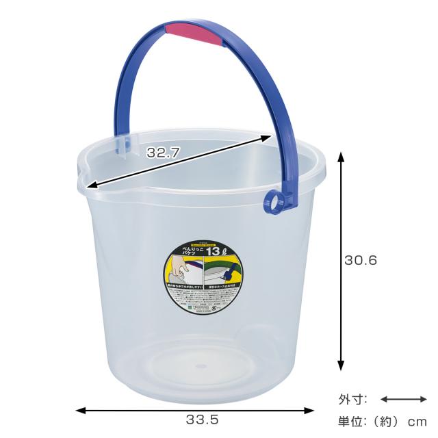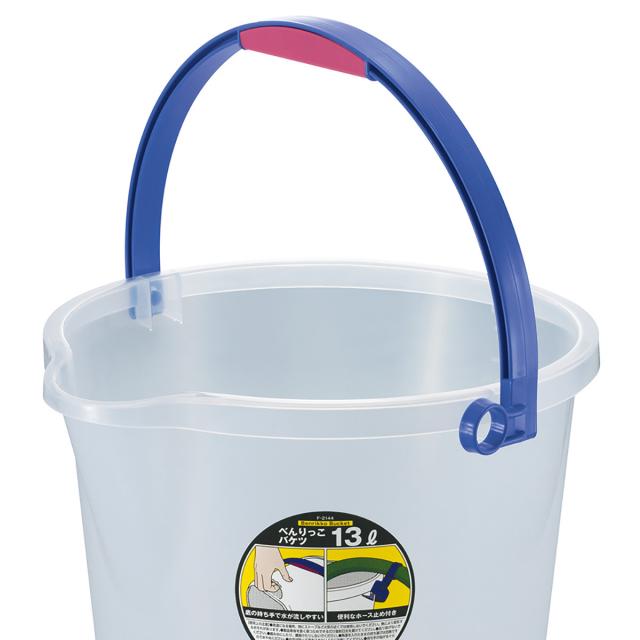 掃除バケツ ホース止め付き べんりっこバケツ 13L クリア ( バケツ 13リットル プラスチック 掃除 目盛り 透明 中身が見える アウトドア 洗車 収納 園芸 ばけつ 掃除用品 )