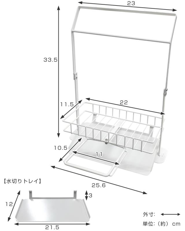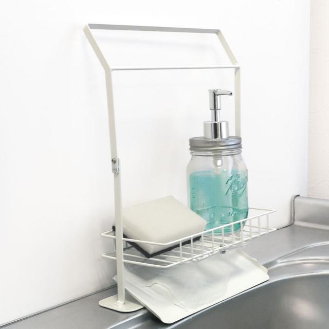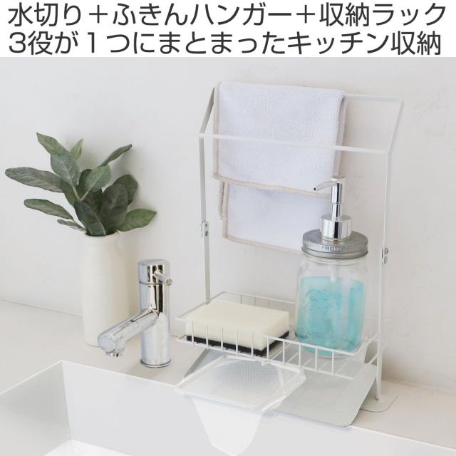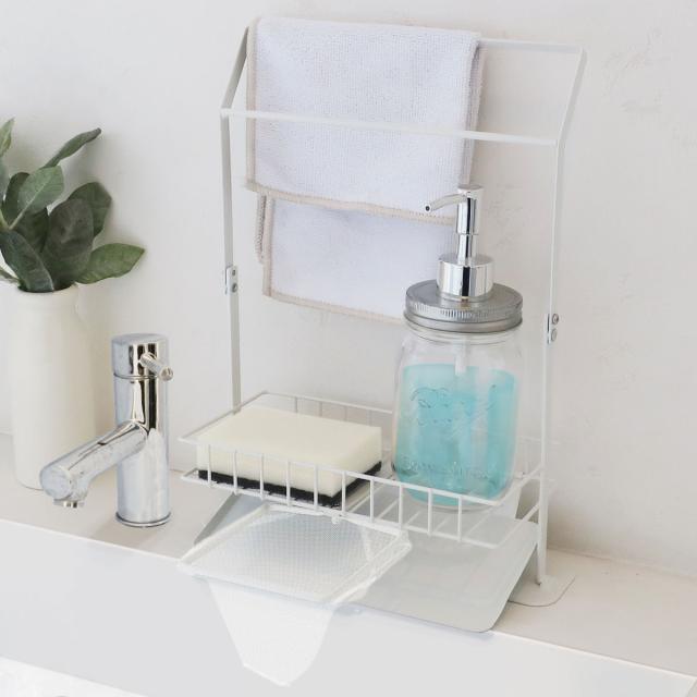 スポンジラック ふきん掛け 水切り付き ふきんハンガーラック ( 布巾スタンド 置き型 スタンド 水切りネットホルダー シンク周り 水周り用品 キッチン収納 シンク 水切りトレー ホワイト 白 無地 シンプル )