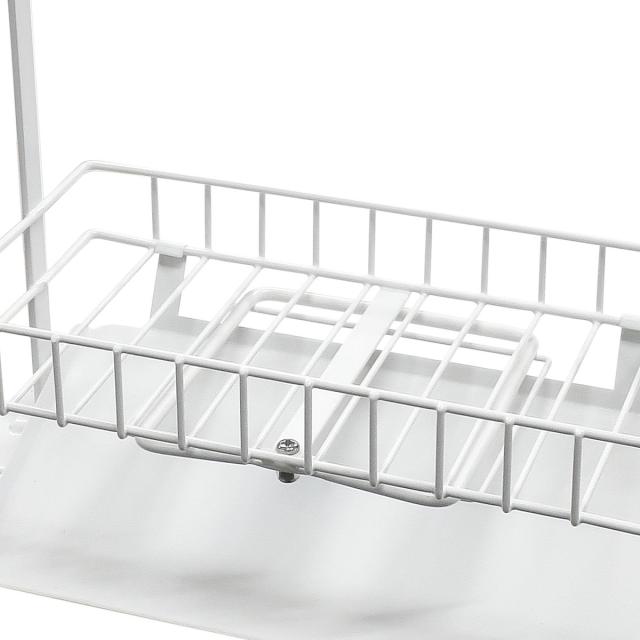 「水切りホルダー」「ふきんハンガー」「収納ラック」が1つになった優れもの。スポンジやボトルの収納だけでなく、ふきん掛け、生ゴミの水切りまでマルチに活躍してくれます。シンク周りに設置するだけで収納力がアップします。