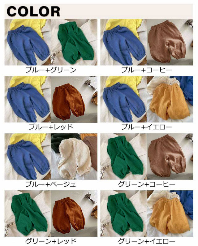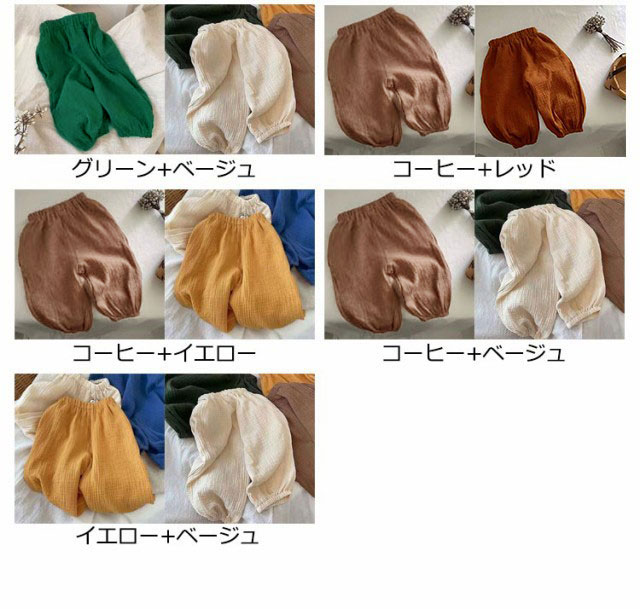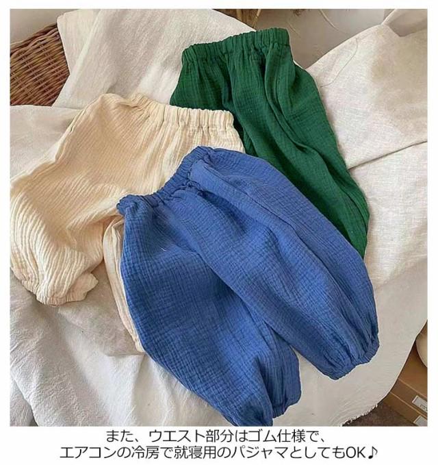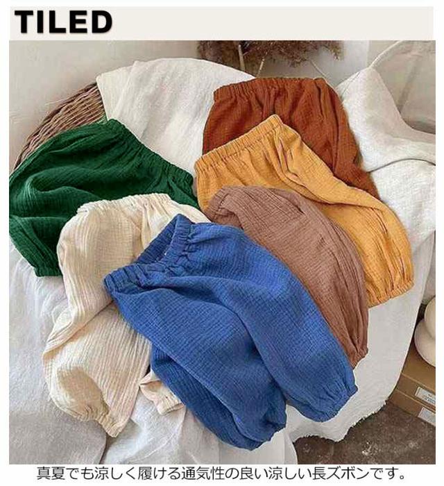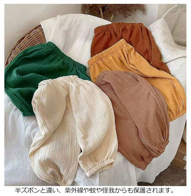 | ウエストゴムで履き替えやすい、室内でもお出かけの場合も着られるラクチンな長ズボン♪ 真夏でも涼しく履ける通気性の良い涼しい長ズボンです。半ズボンと違い、紫外線や蚊や怪我からも保護されます。薄手の生地で家でも外でも、保育園でもどこでも重宝します。 また、ウエスト部分はゴム仕様で、エアコンの冷房で就寝用のパジャマとしてもOK♪ | |