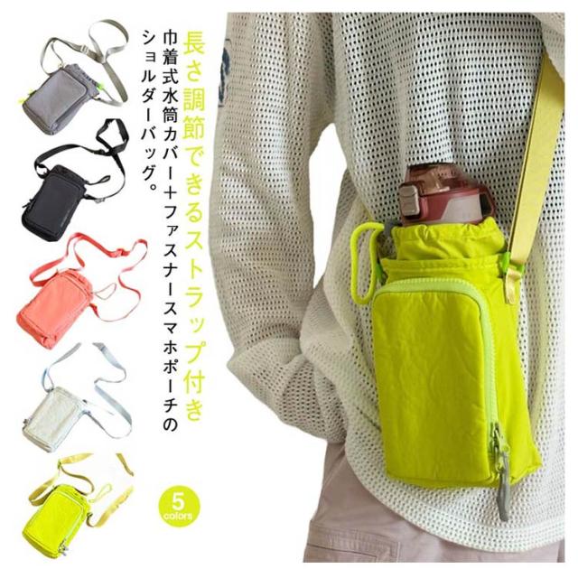 水筒カバー スマホ 入る ペットボトルホルダー スマホポーチ ショルダー ナイロン 撥水 軽量 3way 斜め掛け ショルダーバッグ 大きめ 小さめ タンブラー 水筒ケース ストラップ長さ調節可 ショルダーポーチ 持ち運び 携帯 【送無】