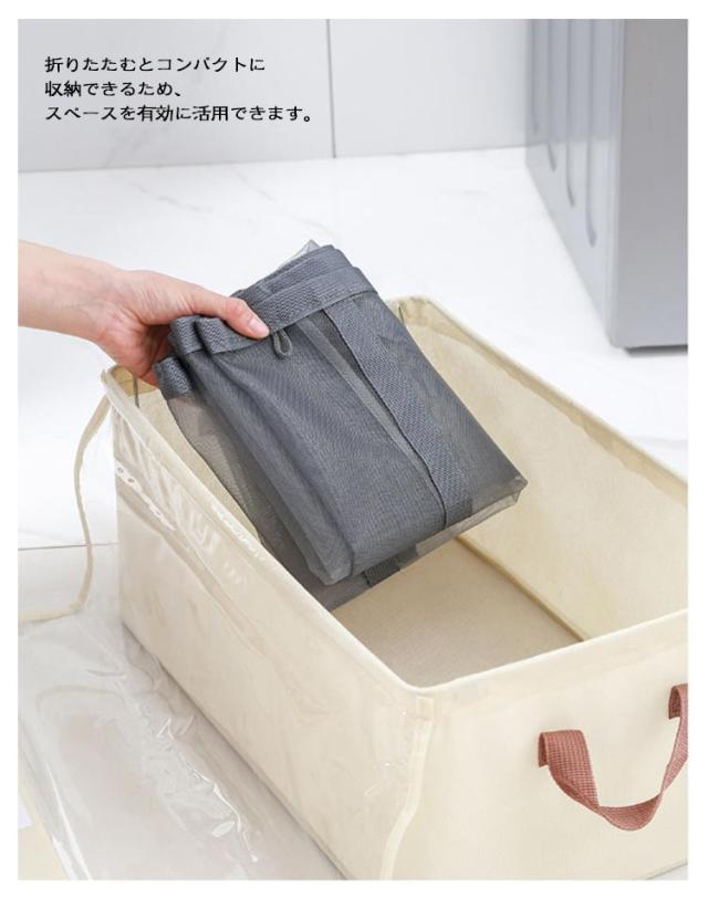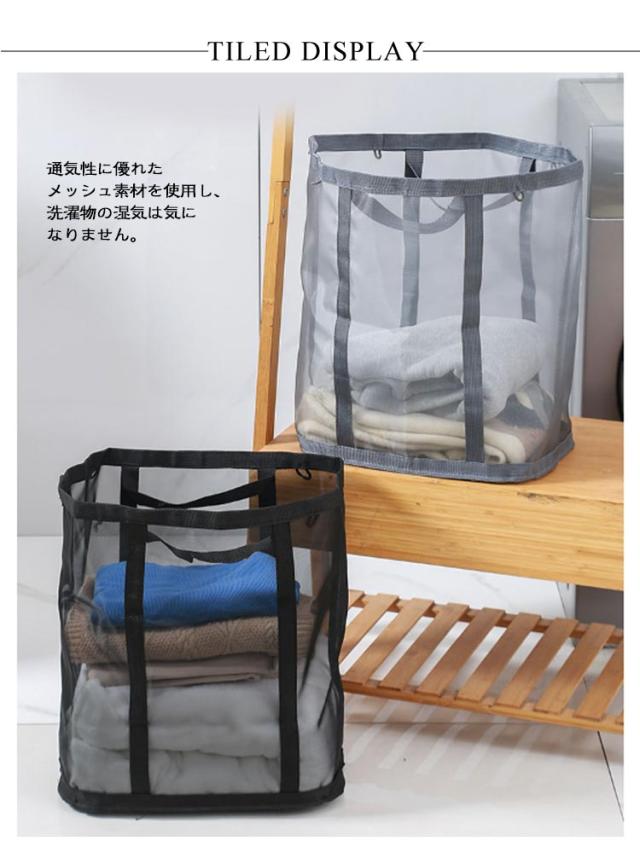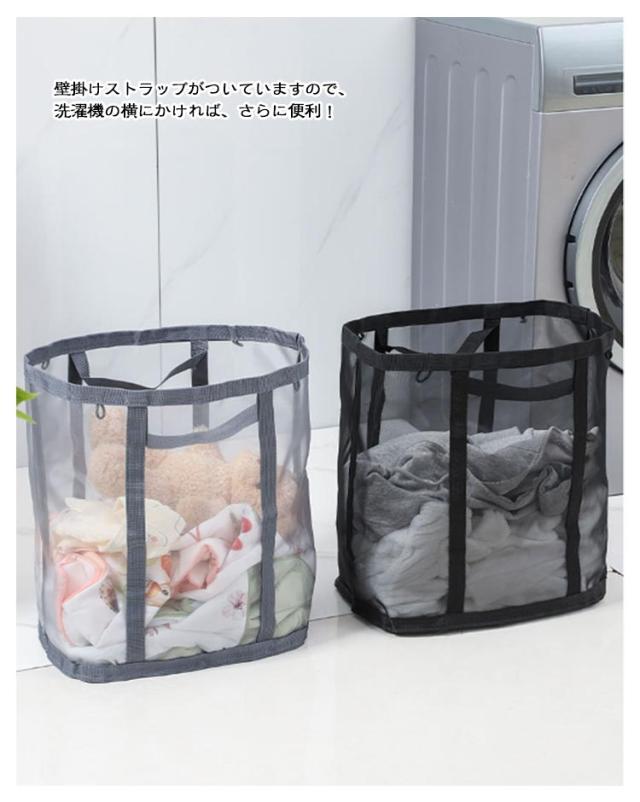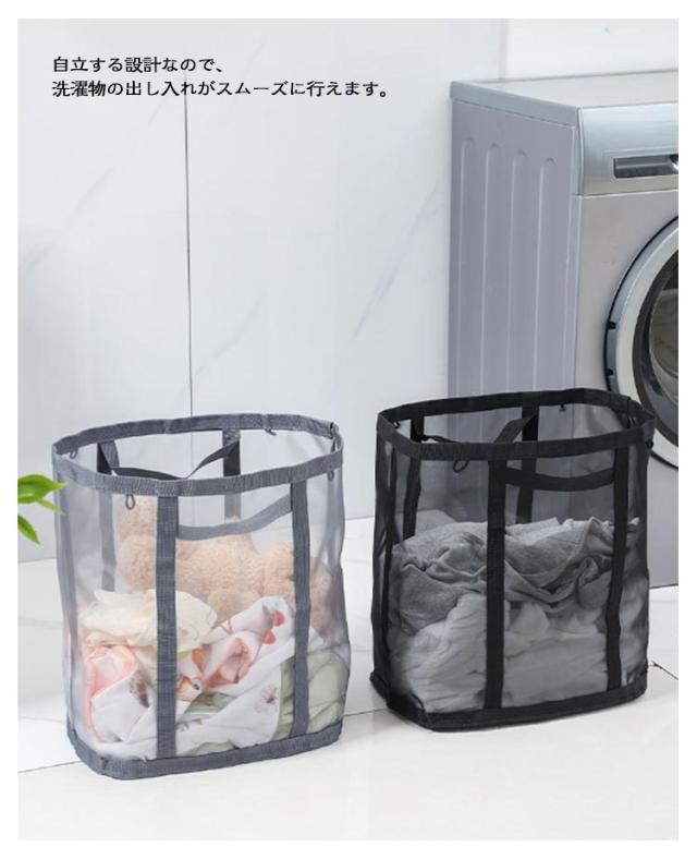 | 洗う前の洗濯物を入れたり、洗濯物を持ち運んだりするのに便利なランドリーバスケットです。 通気性に優れたメッシュ素材を使用し、洗濯物の湿気は気になりません。 自立する設計なので、洗濯物の出し入れがスムーズに行えます。 軽量で持ち手付きなので、屋内からベランダへの移動や外出時にも簡単に持ち運べます。 折りたたむとコンパクトに収納できるため、スペースを有効に活用できます。 壁掛けストラップがついていますので、洗濯機の横にかければ、さらに便利! | |