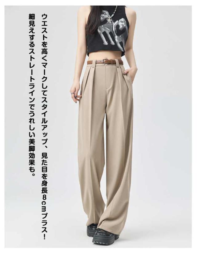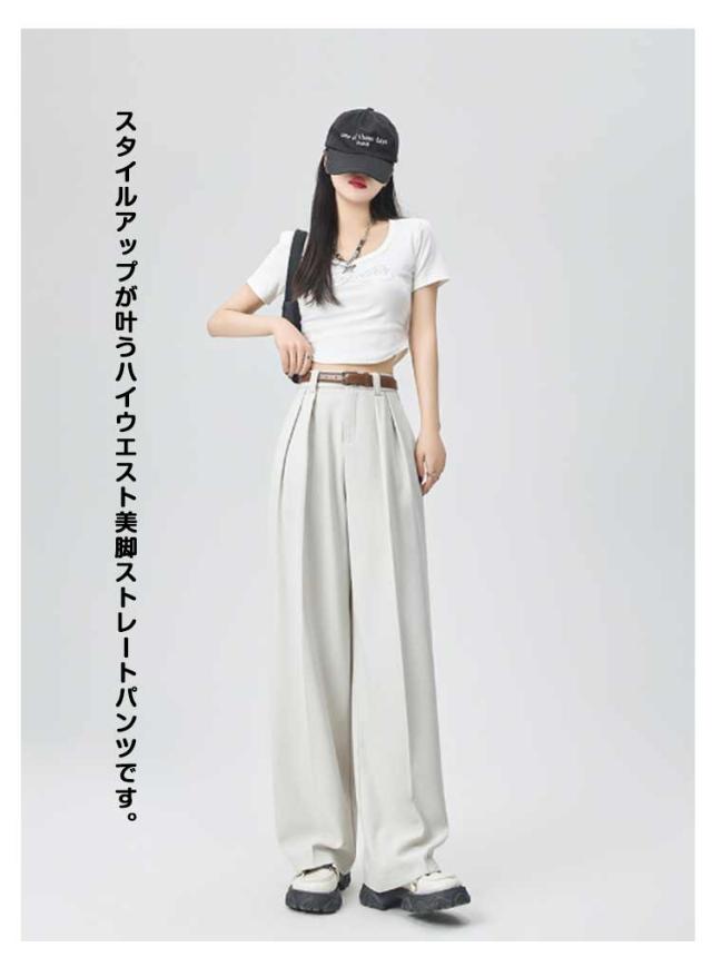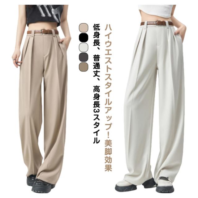 ハイウエスト 春夏 脚長 ハイウエストパンツ スリム ストレートパンツ ゆったり ロングパンツ スーツパンツ スタイルアップ レディース シンプル きれいめ 女性 ボトムス ワイド パンツ ズボン 長ズボン 低身長 通勤 美脚 普通丈 高身長