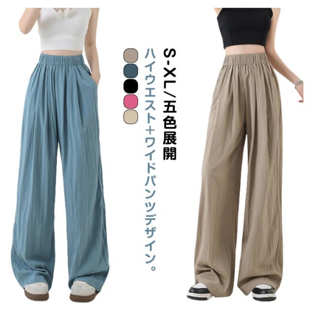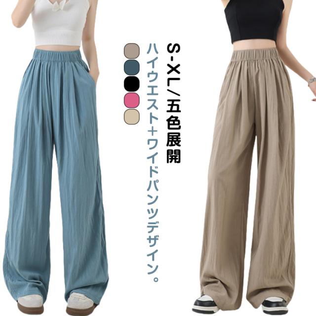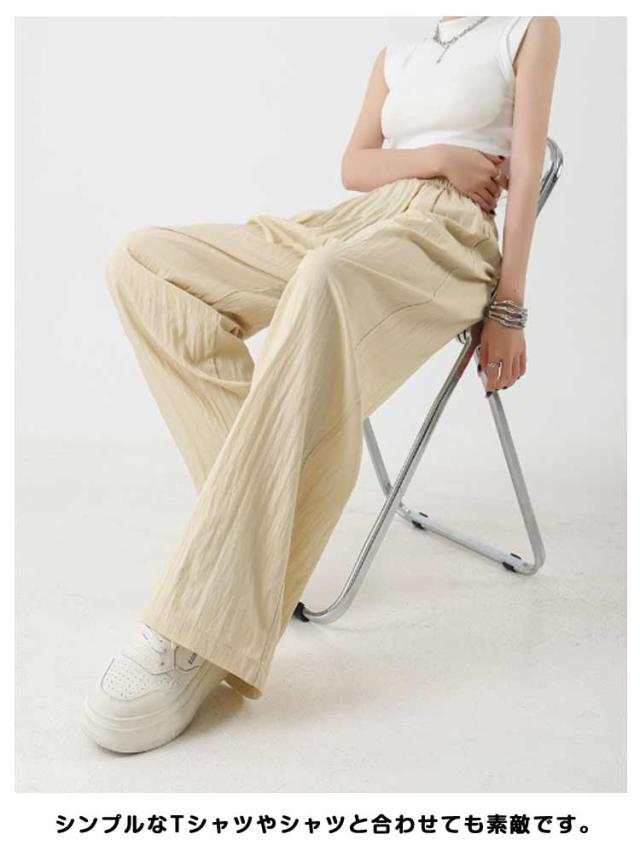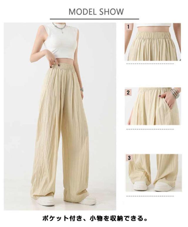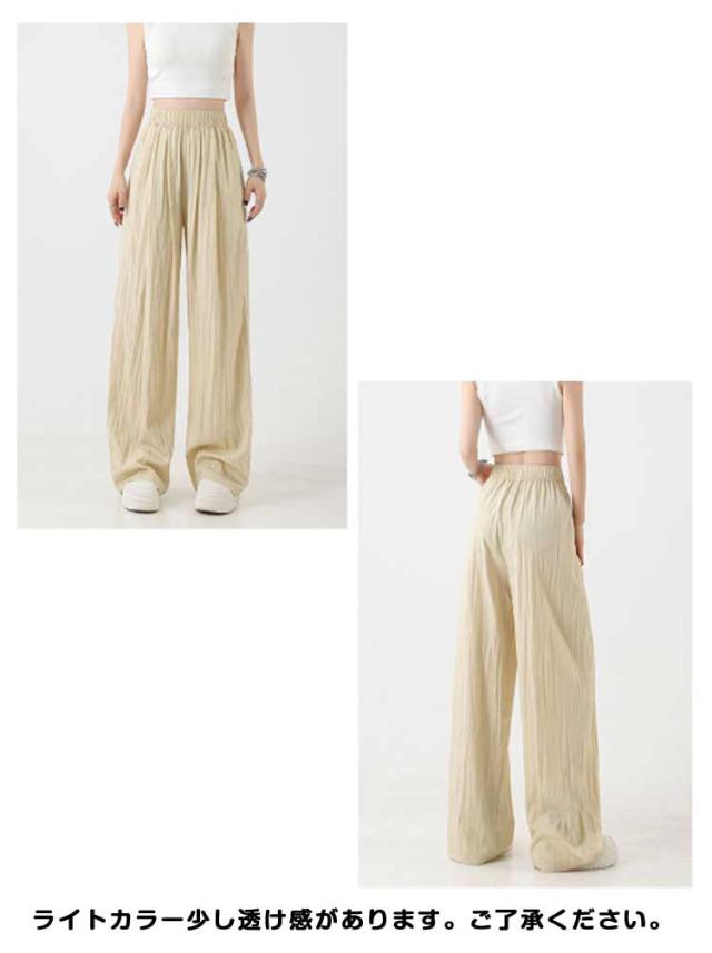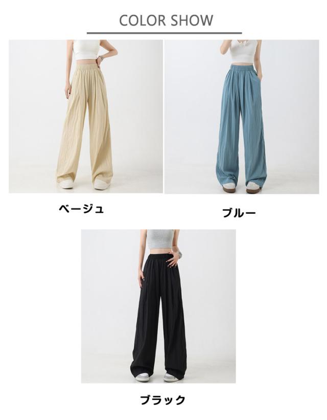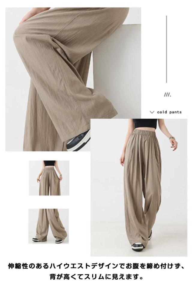 涼しい レディース 夏服 イージーパンツ ガウチョパンツ ロング ワイド ひんやり 夏 薄手 ワイドパンツ シワ加工 ボトムス 速乾 ガウチョ ワイドパンツ 長ズボン リラックス ウエストゴム ポケット付き カジュアル