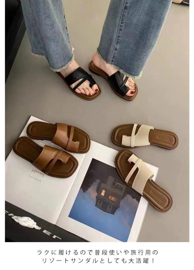 つっかけ スリッパ 歩きやすい ぺたんこ 柔らかい コンフォートサンダル レザー かかとなし フラットサンダル 軽量 トングサンダル トングサンダル 合成皮革 楽 カジュアル きれいめ おしゃれ 海 春