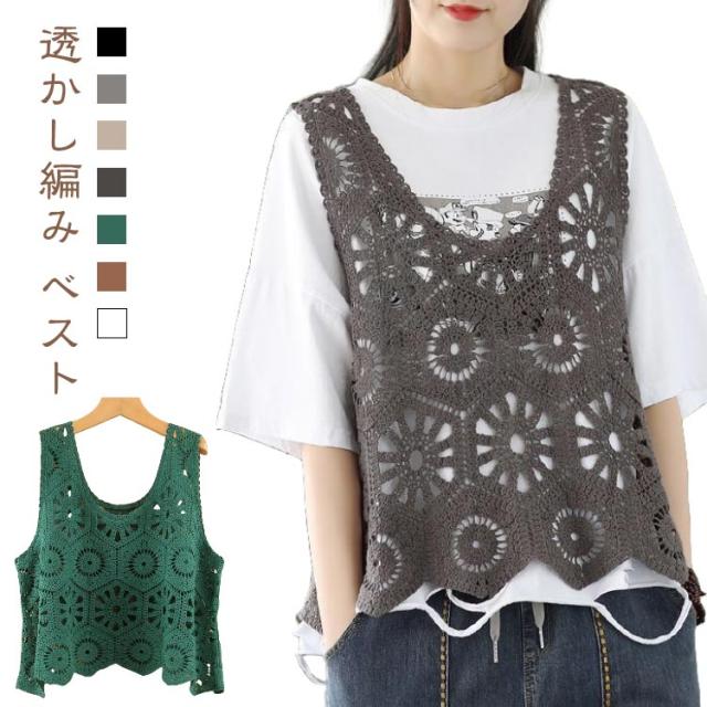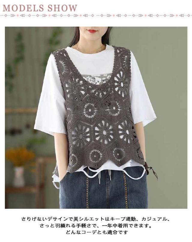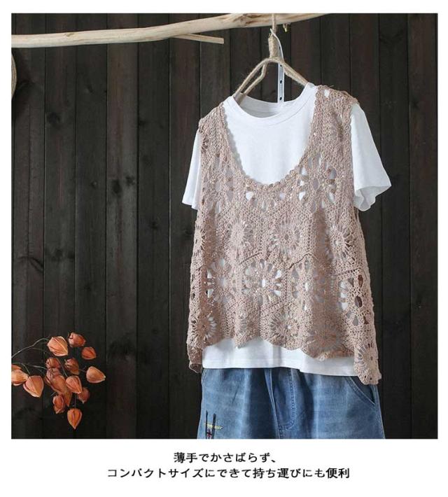 トップス プルオーバー ベスト メッシュ 花柄 レディース 夏 カジュアル サマー ベスト 薄手 Vネック ベスト 無地 レイヤード ニットベスト 春 トップス 透け 重ね着 きれいめ カジュアル ノースリーブ アウターウエア 羽織 レイヤード