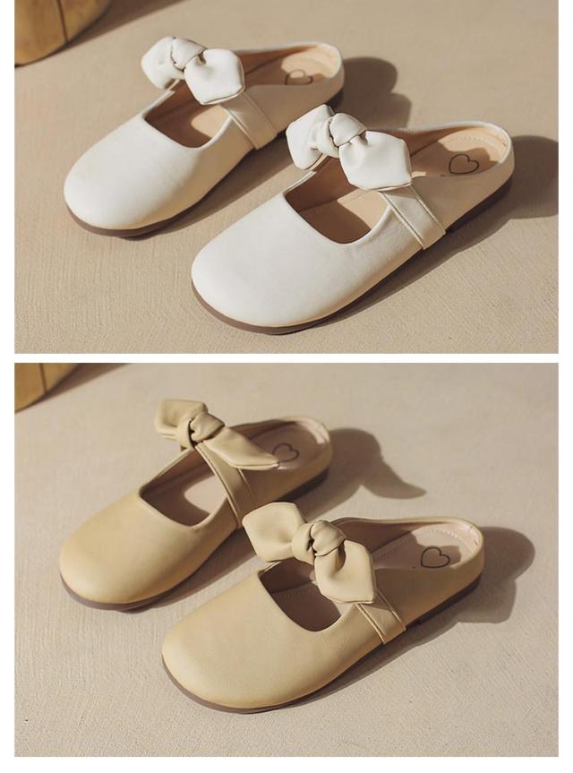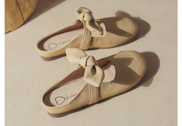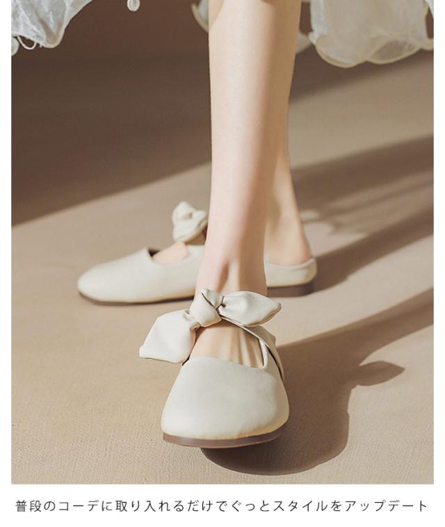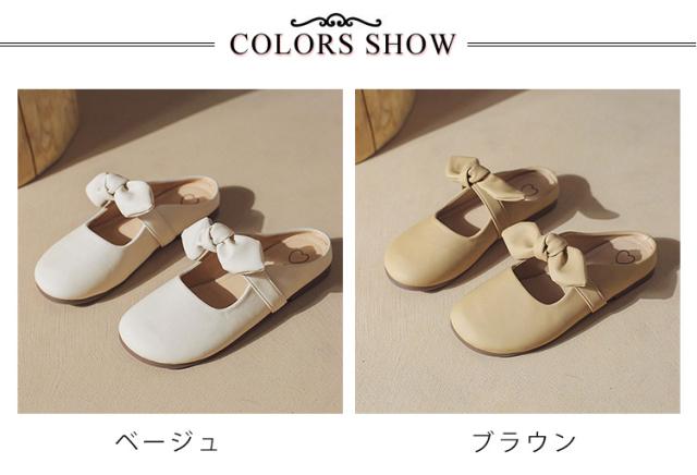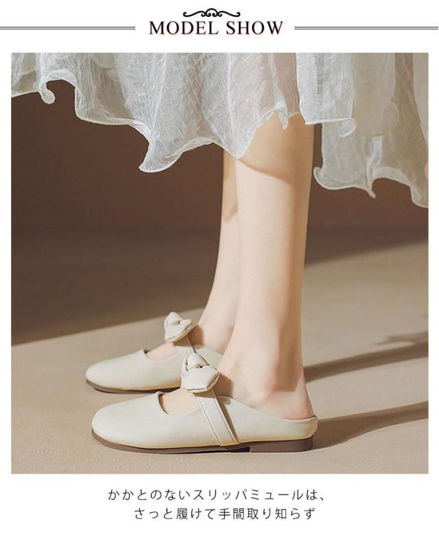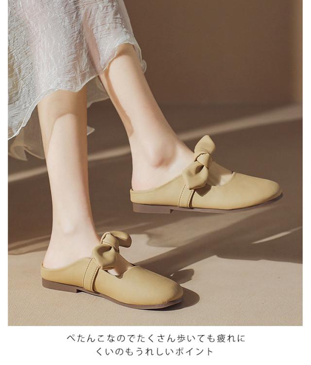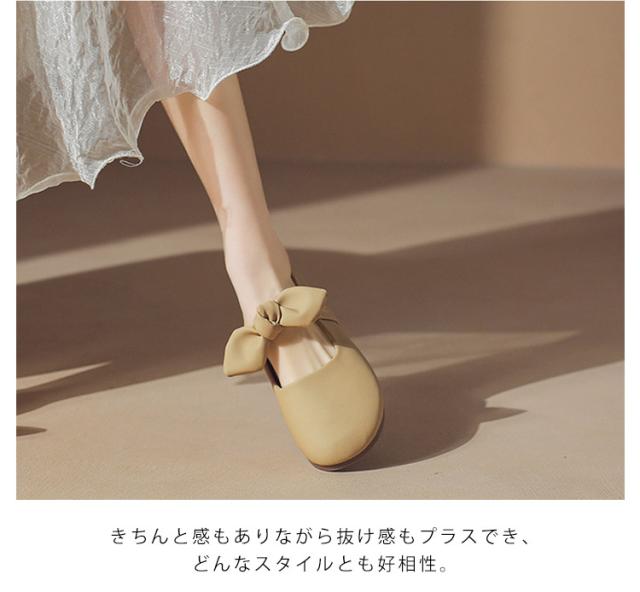 リボン付き 歩きやすい つっかけ ローヒール サンダル ペタンコ 春夏 レディース かかとなし フラットシューズ ミュールサンダル パンプス サマーシューズ 靴 外履きスリッパ かわいい お洒落 きれいめ
