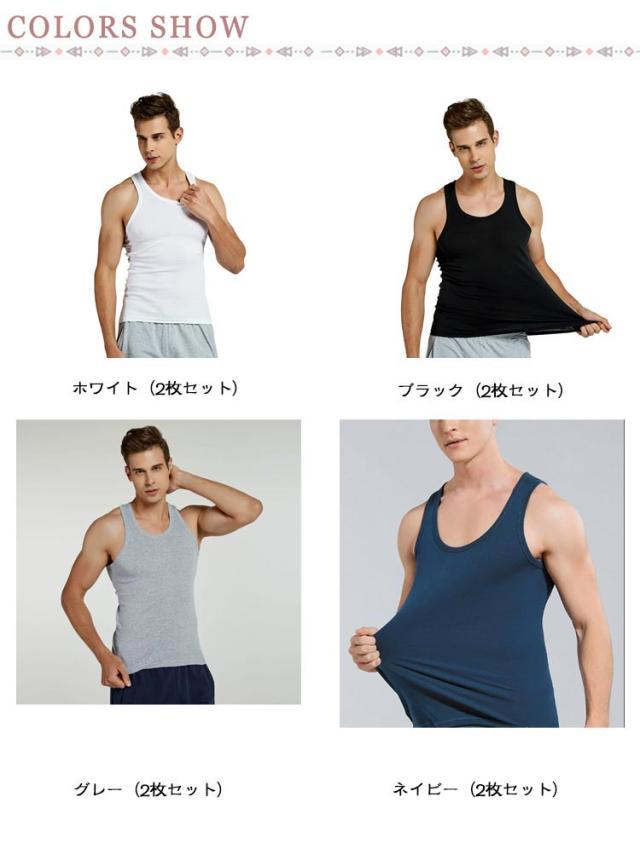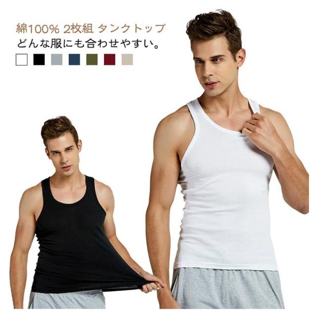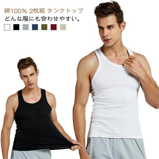 ノースリーブ タンクトップ メンズ 肌着 下着 2枚セット インナーシャツ 定番 2枚セット オールシーズン シンプル 綿100% 紳士 リブ フィットネス トレーニングウェア ランニングウェア スポーツウェア