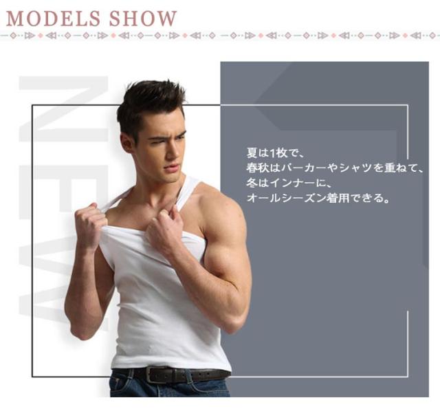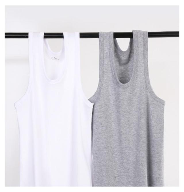 | 綿100% 2枚組 タンクトップ どんな服にも合わせやすい。 夏は1枚で、春秋はパーカーやシャツを重ねて、冬はインナーに、オールシーズン着用できる。 | |