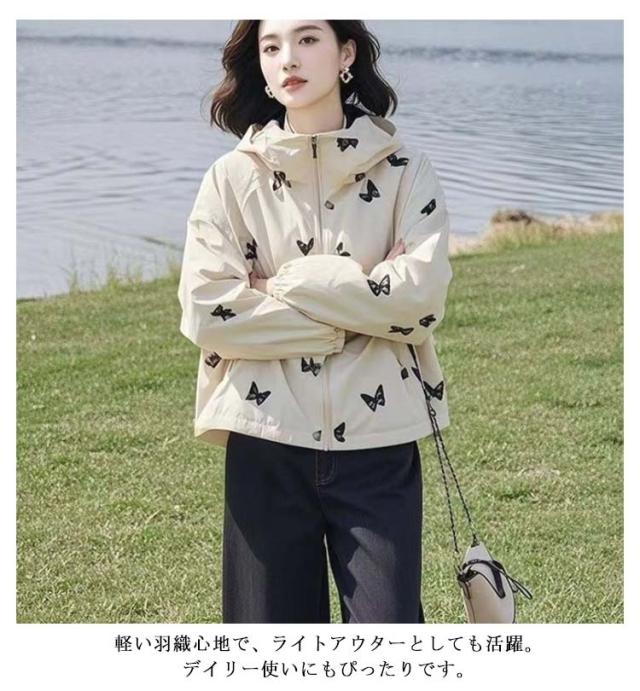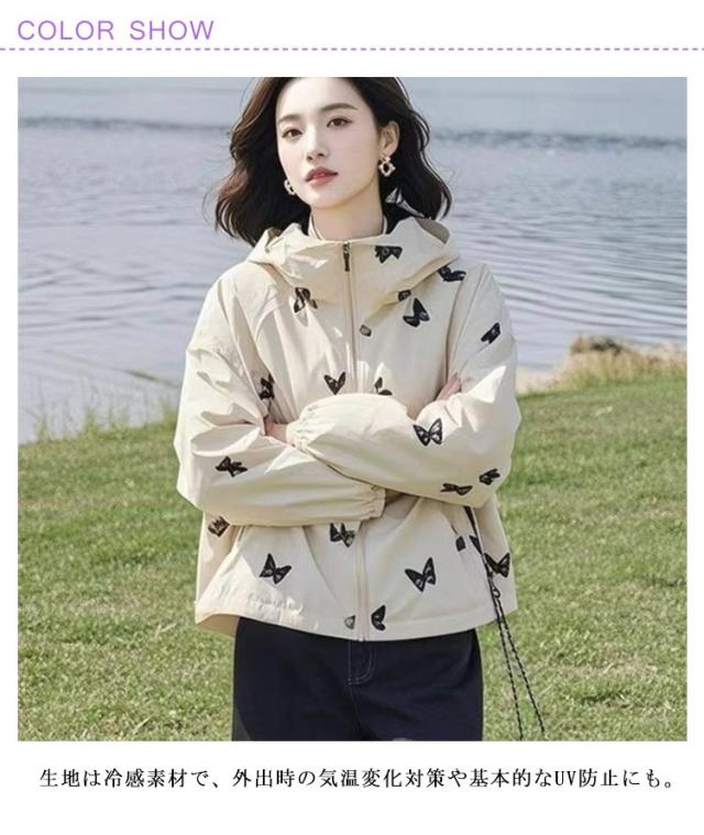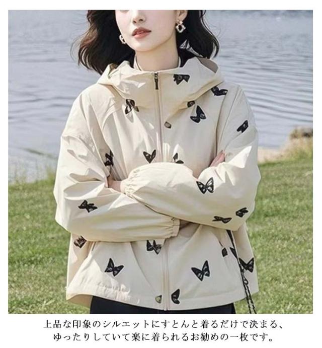 ジャケット 紫外線対策 薄手 春 マウンテンパーカー ラッシュガード レディース フード付き ジャンバー おしゃれ ブルゾン 蝶 蝶 ショート丈 ライトアウター 夏 M L XL 2XL 3XL
