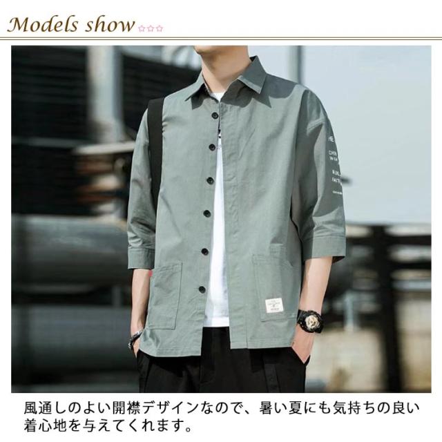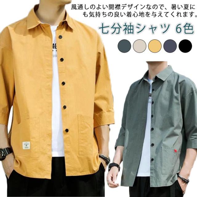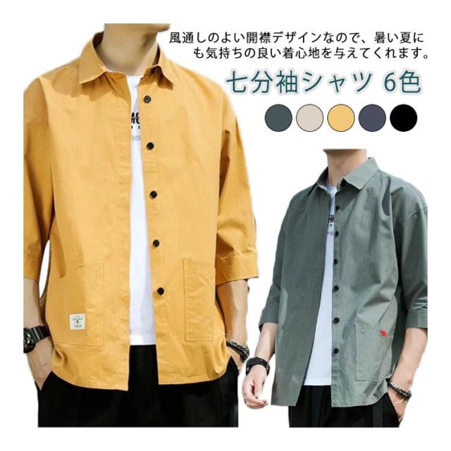 七分袖 メンズ シャツ シャツ 速乾 夏服 冷感 ゆったり ポケット 半袖シャツ 吸汗速乾 カジュアルシャツ 開襟シャツ 無地 ビジネス