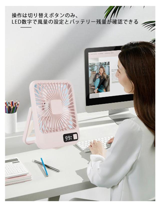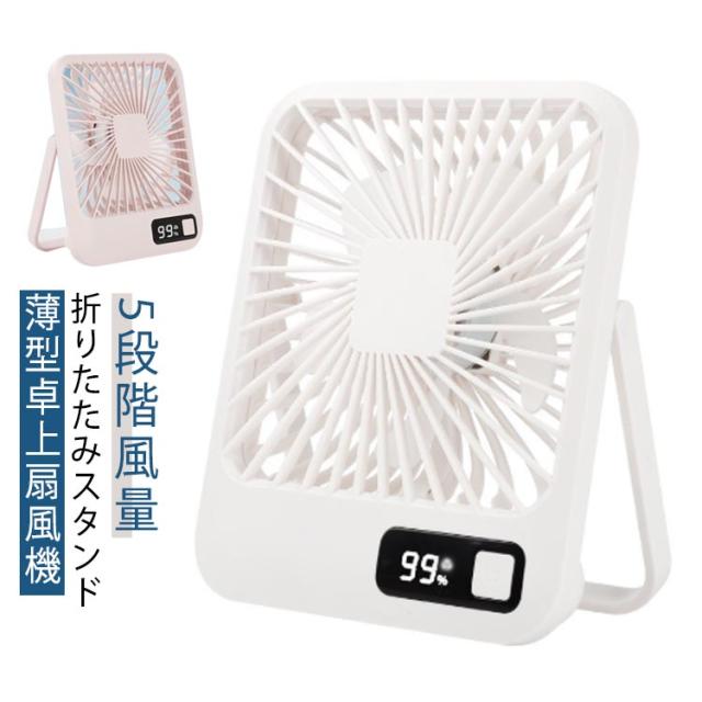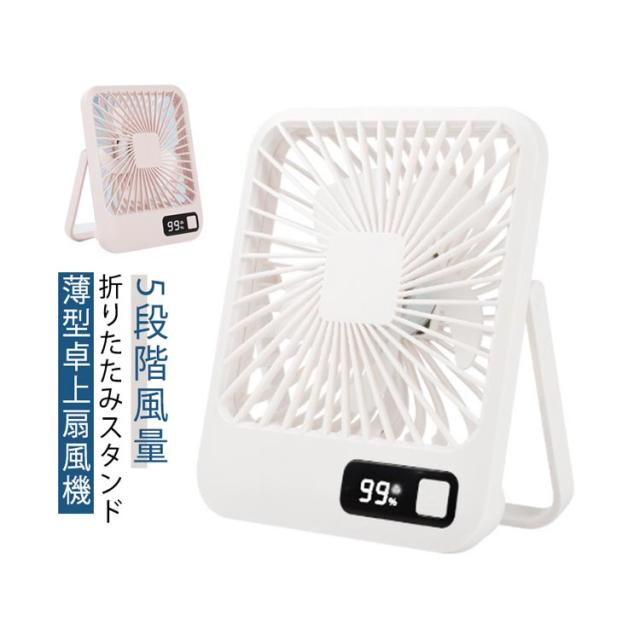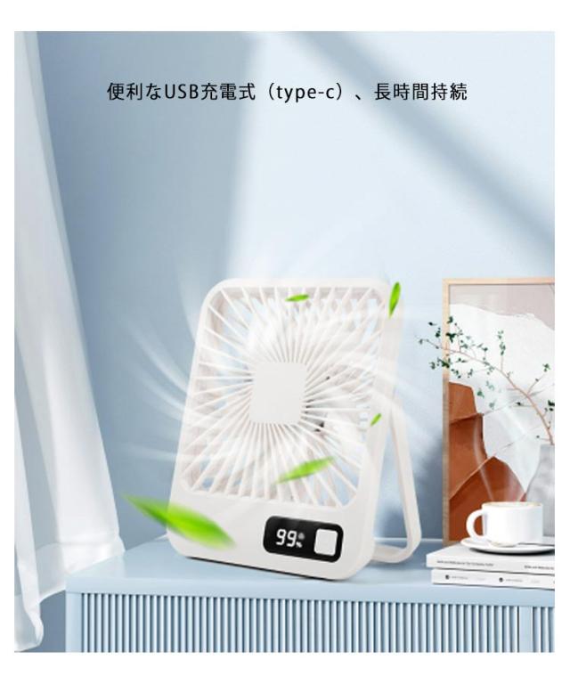 | 薄型卓上扇風機 5段階風量 折りたたみスタンド 風に吹かれ、快適な夏へ 上下の角度は手動で180度調節可能 操作は切り替えボタンのみ、LED数字で風量の設定とバッテリー残量が確認できる 便利なUSB充電式(type-c)、長時間持続 卓上&壁掛け。どこでも楽に掛けます | |