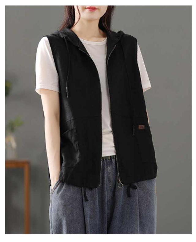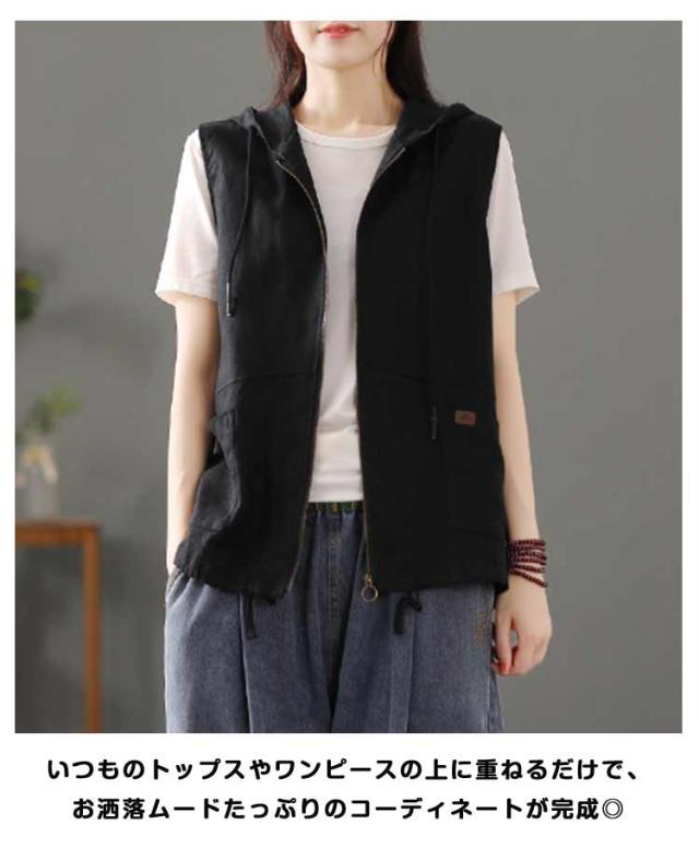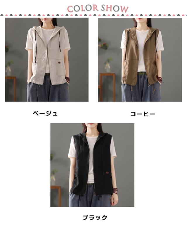 春 前開き レイヤード トップス 綿麻風 レディース ジレ アウター ノースリーブ トレンチベスト ジレンチ コート リネンベスト 羽織り 無地 綿麻風 パーカー 羽織 ライトアウター ショート丈 フード付き ベスト ジップアップパーカー 春 夏