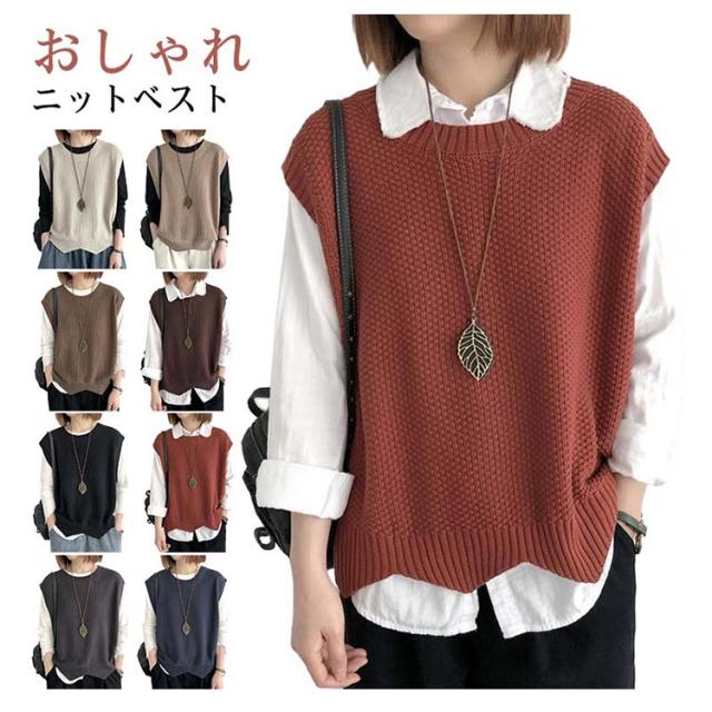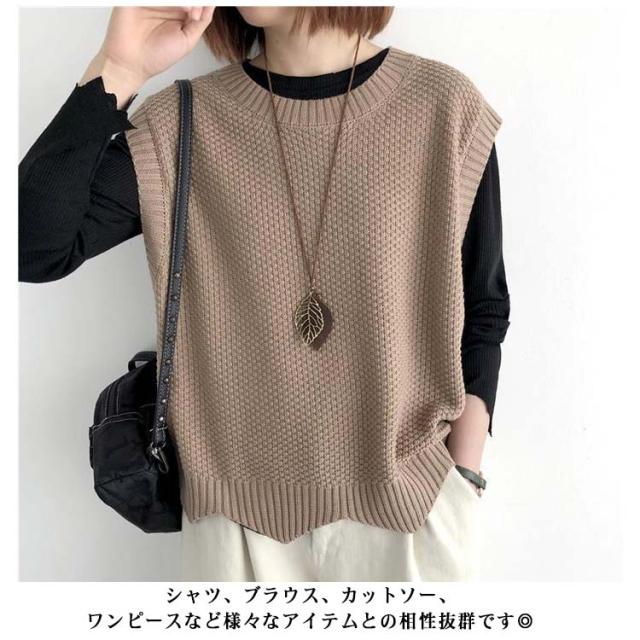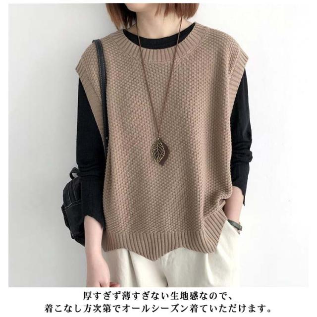 サマーニット ノースリーブ ニットベスト ニット サマーベスト プルオーバー ベスト レディース ニット 夏 春 大きいサイズ 薄地 ベスト ゆったり 体型カバー ミディアム丈 ストレッチ おしゃれ レイヤード