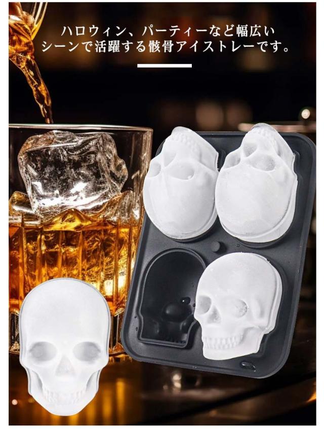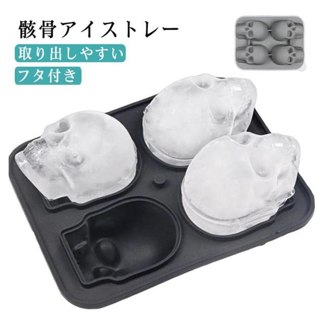取り出しやすい シリコン フタ付き 骸骨 怖い 4ピース 装飾 冷たい 製氷 氷 製氷皿 アイストレー 取りやすい 夏 製氷皿 アイス アイストレイ アイスキューブ コンパクト 使い分け 冷凍 自家製氷 アイス 夏 涼アイテム カフェ ウィスキー お酒