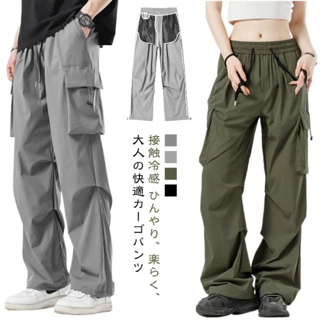 カーゴパンツ アイスシルクパンツ カーゴパンツ カジュアル 夏 接触冷感 速乾 ボトムス 男女兼用 作業着 メンズ ストレッチパンツ メンズ カジュアルパンツ キャンプ テーパードパンツ 体型カバー