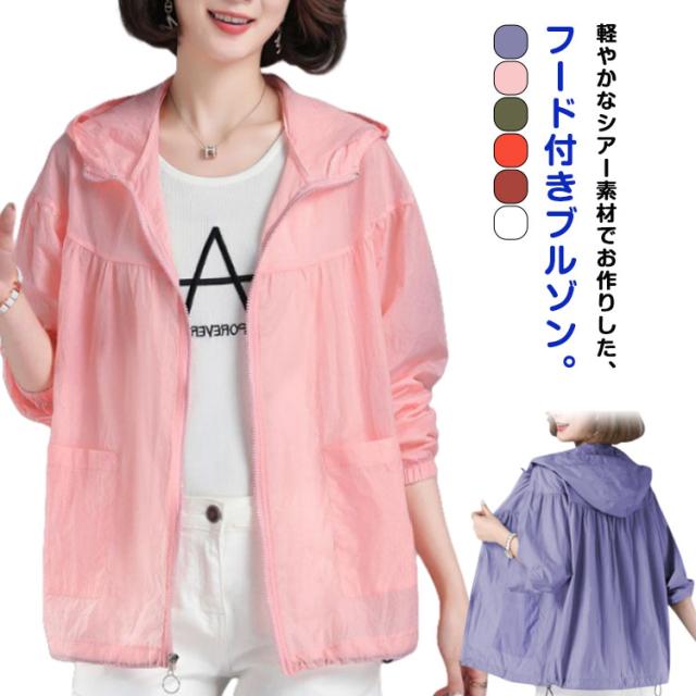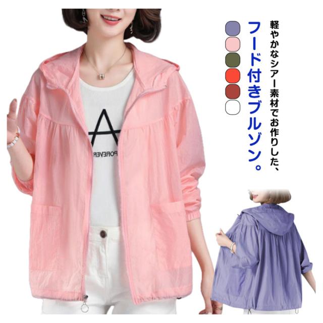 シアーブルゾン UVカット シアー ウインドブレーカー レディース シアートップス シアーブルゾン ジャケット ジャンバー フード付 長袖 紫外線カット サマーパーカー シースルー 冷房対策 ビーチ フェミニン 感 ひんやり 速乾 薄手
