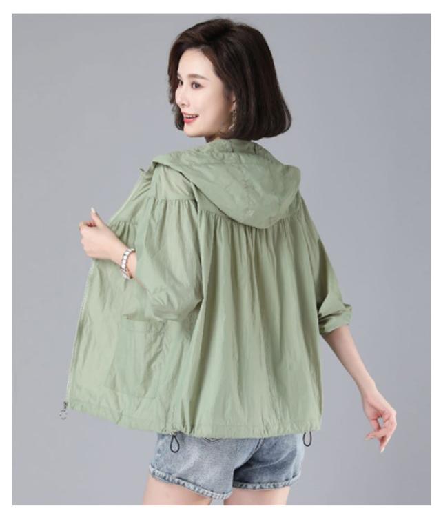 | 軽やかなシアー素材でお作りした、フード付きブルゾン。 程よい透け感がありながらもしっかりとしたハリ感でカジュアルになりすぎず上品な印象に。 レジャーシーンでの日よけや防風対策に◎サッと着られる薄手のフード付きパーカー。薄 手でさらっと羽織れる♪優しい透け感のシアー&ぽわんと丸みのあるシルエットで女性らしくニュアンス感のある着こなしに。 お洒落なサマーアウターとして、おすすめの一着です。 身材や年齢を問わず、多様なマッシュアップが可能です。 | |