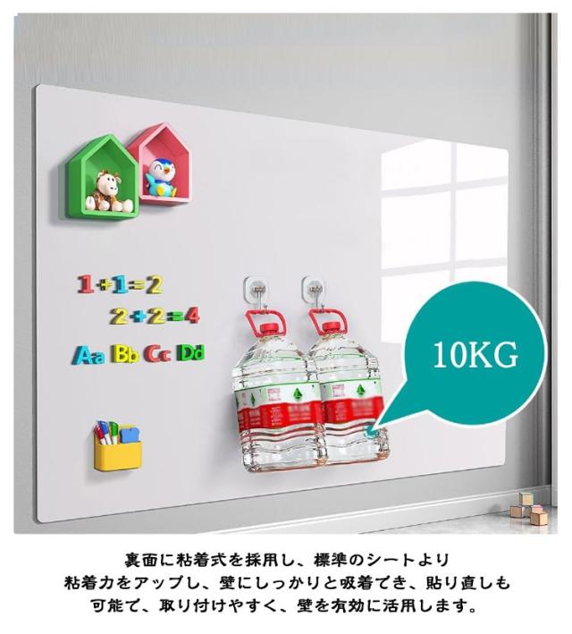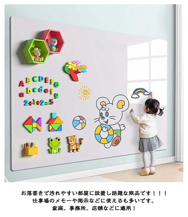 | 40*60cm 60*90cm 貼って剥がせる粘着式・省スペース設計! 裏面に粘着式を採用し、標準のシートより粘着力をアップし、壁にしっかりと吸着でき、貼り直しも可能で、取り付けやすく、壁を有効に活用します。 表面は滑らかで、スムーズに書くことができます。 大判のホワイトボードシートで、ハサミ、カッターなどを使いとお好きなサイズ・形にカットできます。 壁、家具のサイズによってホワイトボードシートを自由に組合わせ、家族へのメッセージやメモ・リスト、ホワイトボードシートカレンダー、落書きなど使い方は様々! お落書きで汚れやすい部屋に設置し話題な商品です!!!仕事場のメモーや掲示などに使えるも多いです。家庭、事務所、店舗などに適用! | |