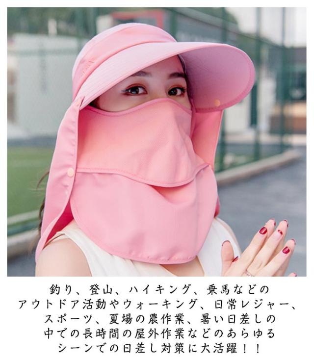 uvカット レディース つば広 ネックカバー メンズ 帽子 農作業 日よけ サンバイザー あご紐 日焼け防止 軽い uv帽子 日よけ帽子 飛ばない 折りたたみ フェイスカバー キャップ 涼しい おしゃれ ガーデニング 春 夏 秋 避暑
